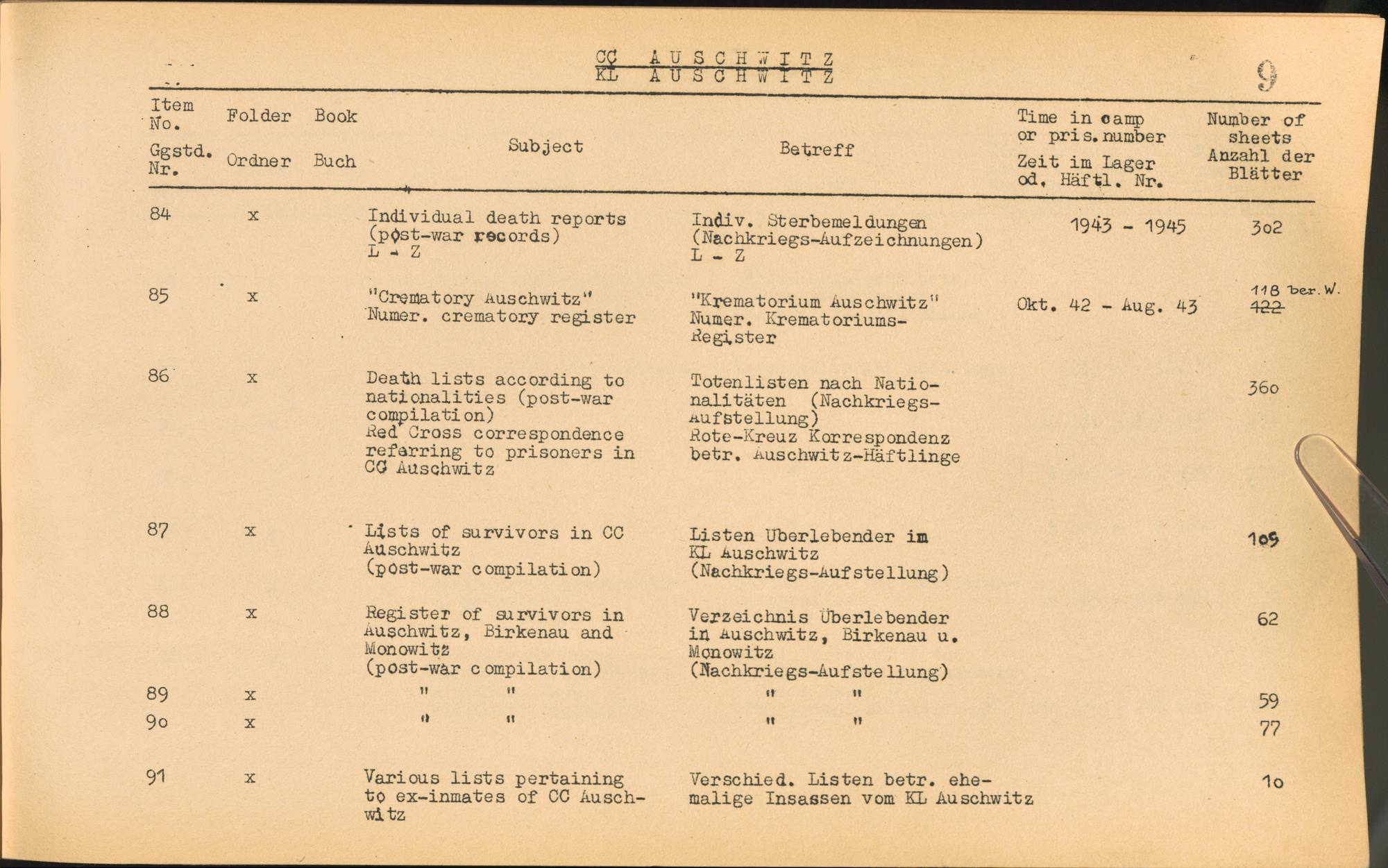 Catalogue of Records held by the International Tracing Service of the Allied High Commission For Germany at Arolsen : Vol. I
