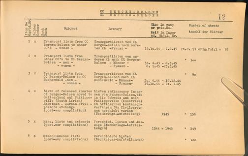 Catalogue of Records held by the International Tracing Service of the Allied High Commission For Germany at Arolsen : Vol. I