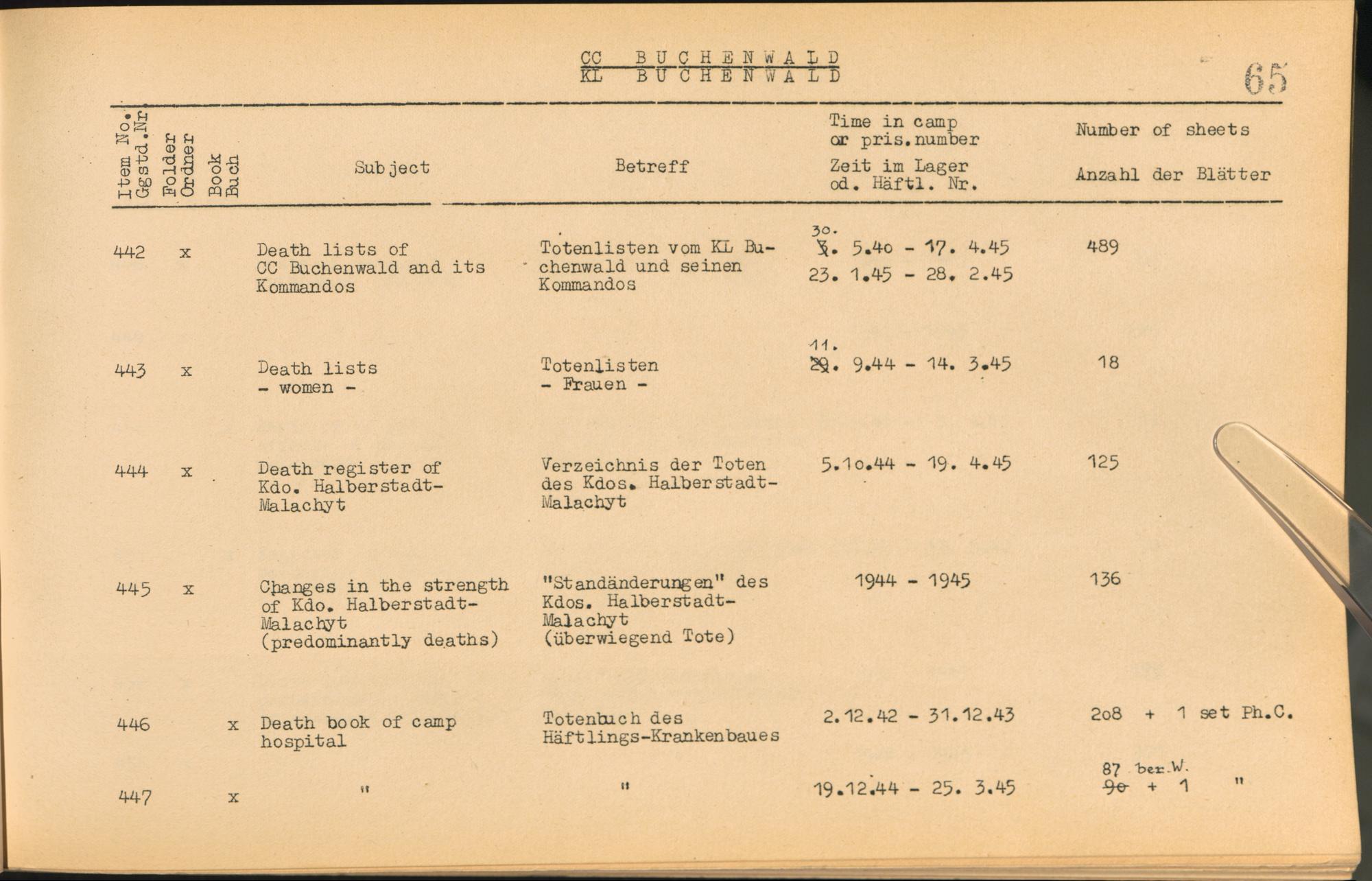 Catalogue of Records held by the International Tracing Service of the Allied High Commission For Germany at Arolsen : Vol. I