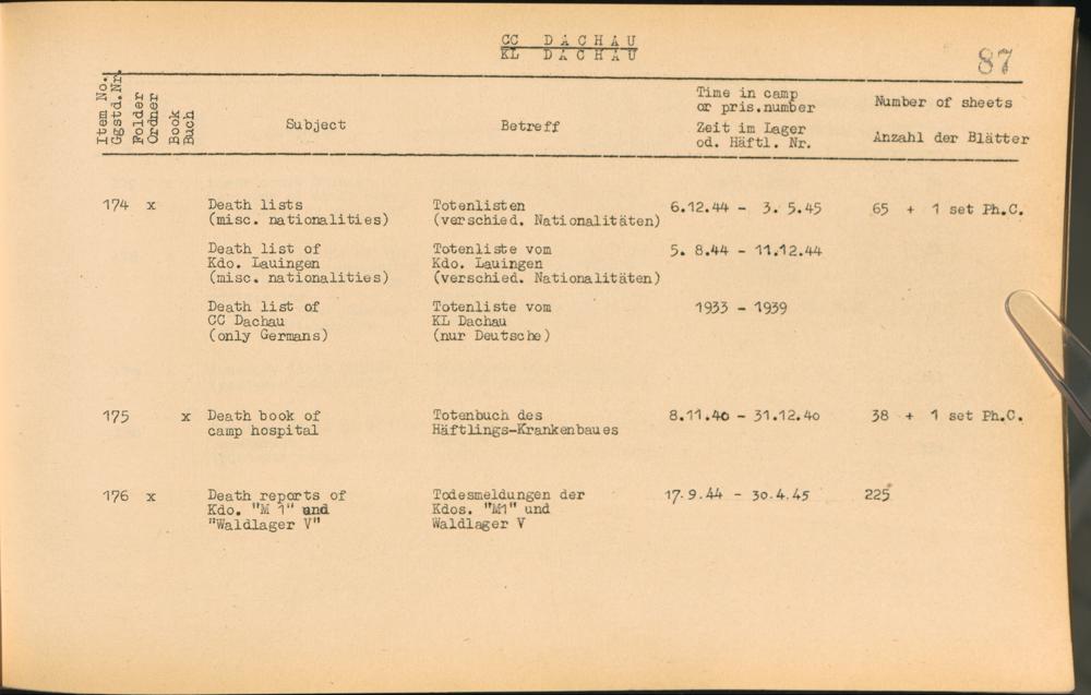 Catalogue of Records held by the International Tracing Service of the Allied High Commission For Germany at Arolsen : Vol. I