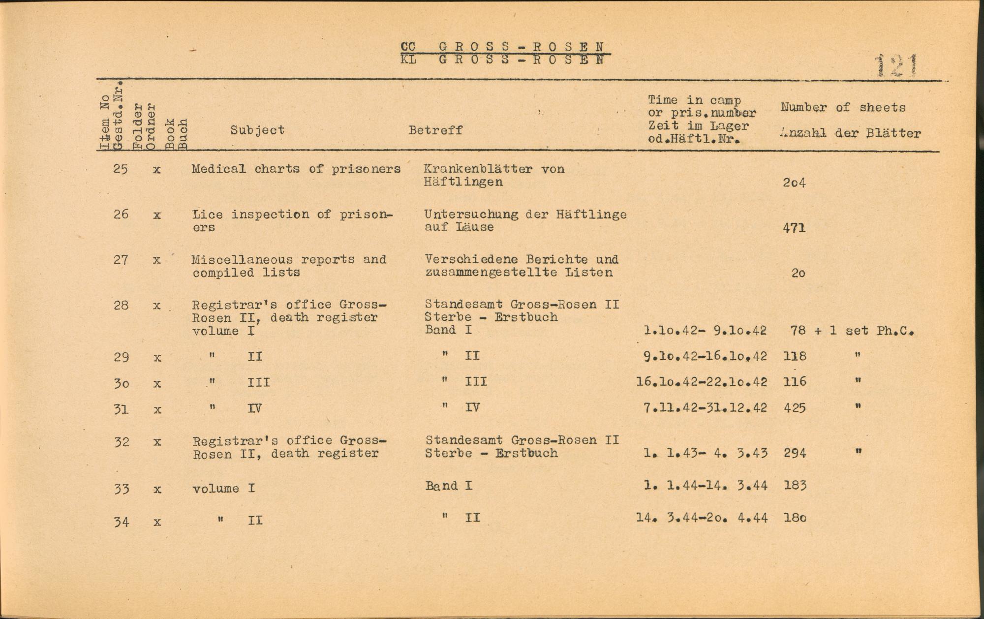 Catalogue of Records held by the International Tracing Service of the Allied High Commission For Germany at Arolsen : Vol. I