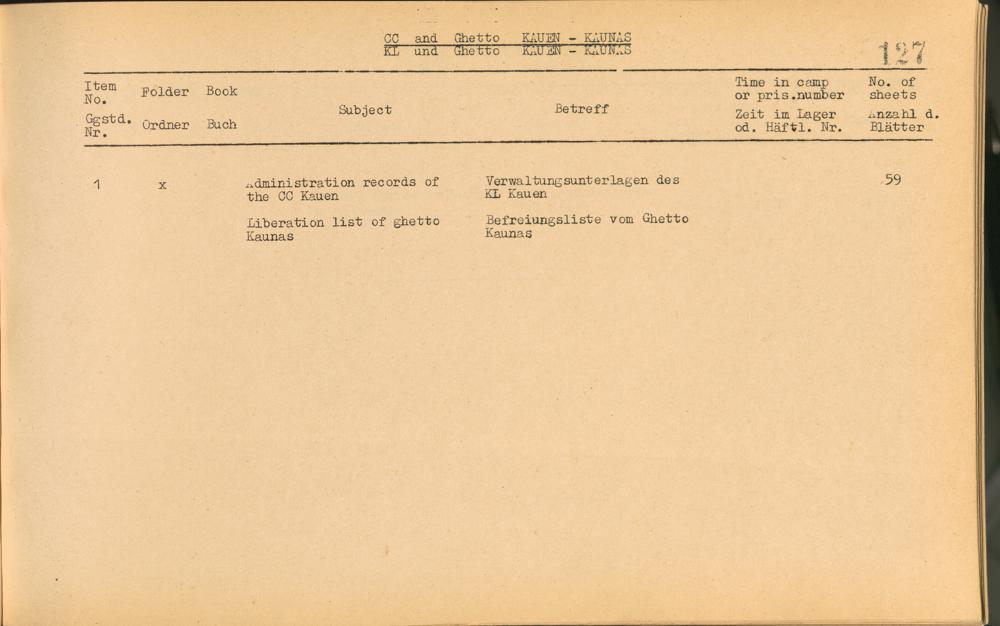 Catalogue of Records held by the International Tracing Service of the Allied High Commission For Germany at Arolsen : Vol. I
