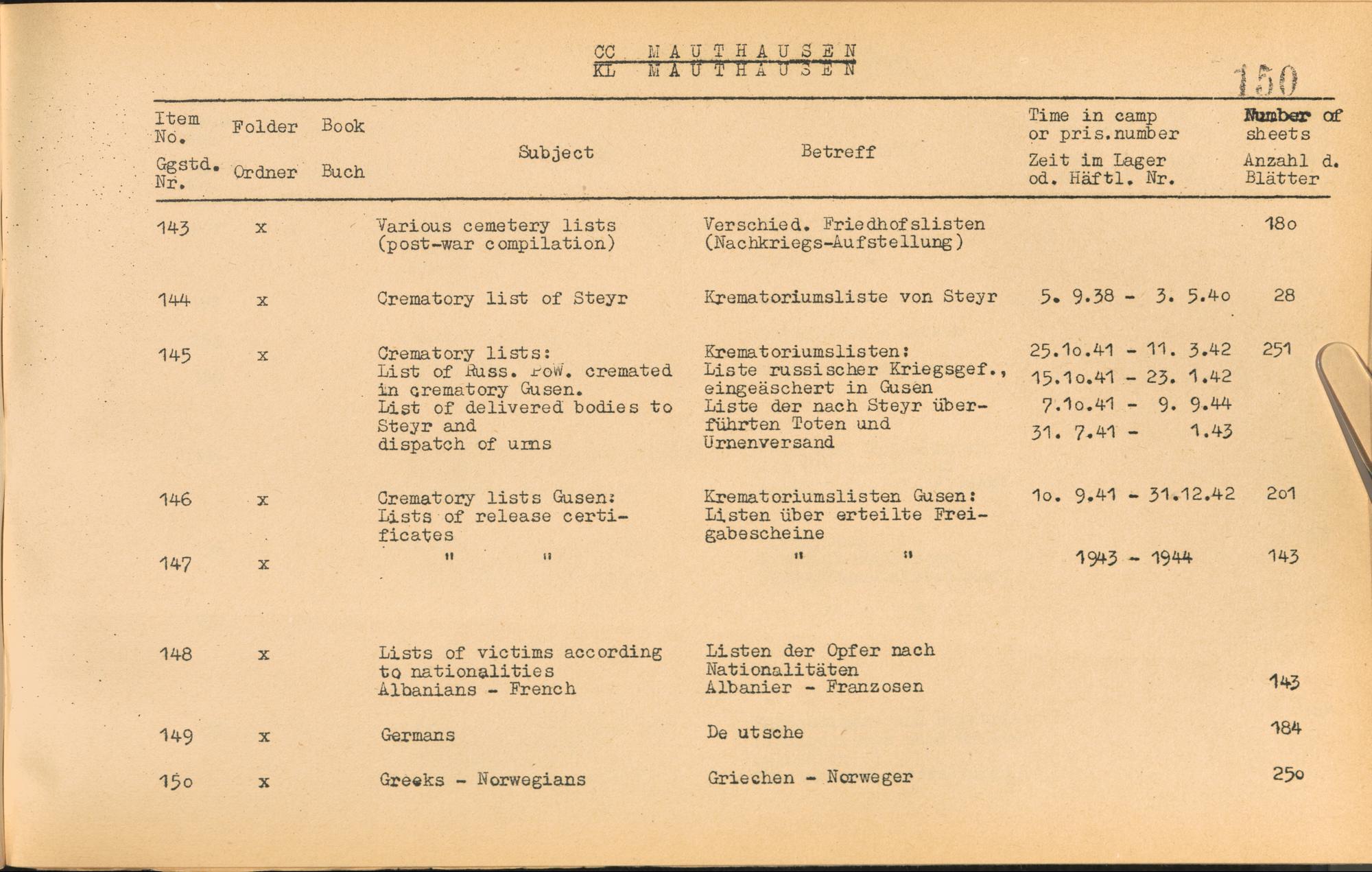 Catalogue of Records held by the International Tracing Service of the Allied High Commission For Germany at Arolsen : Vol. I