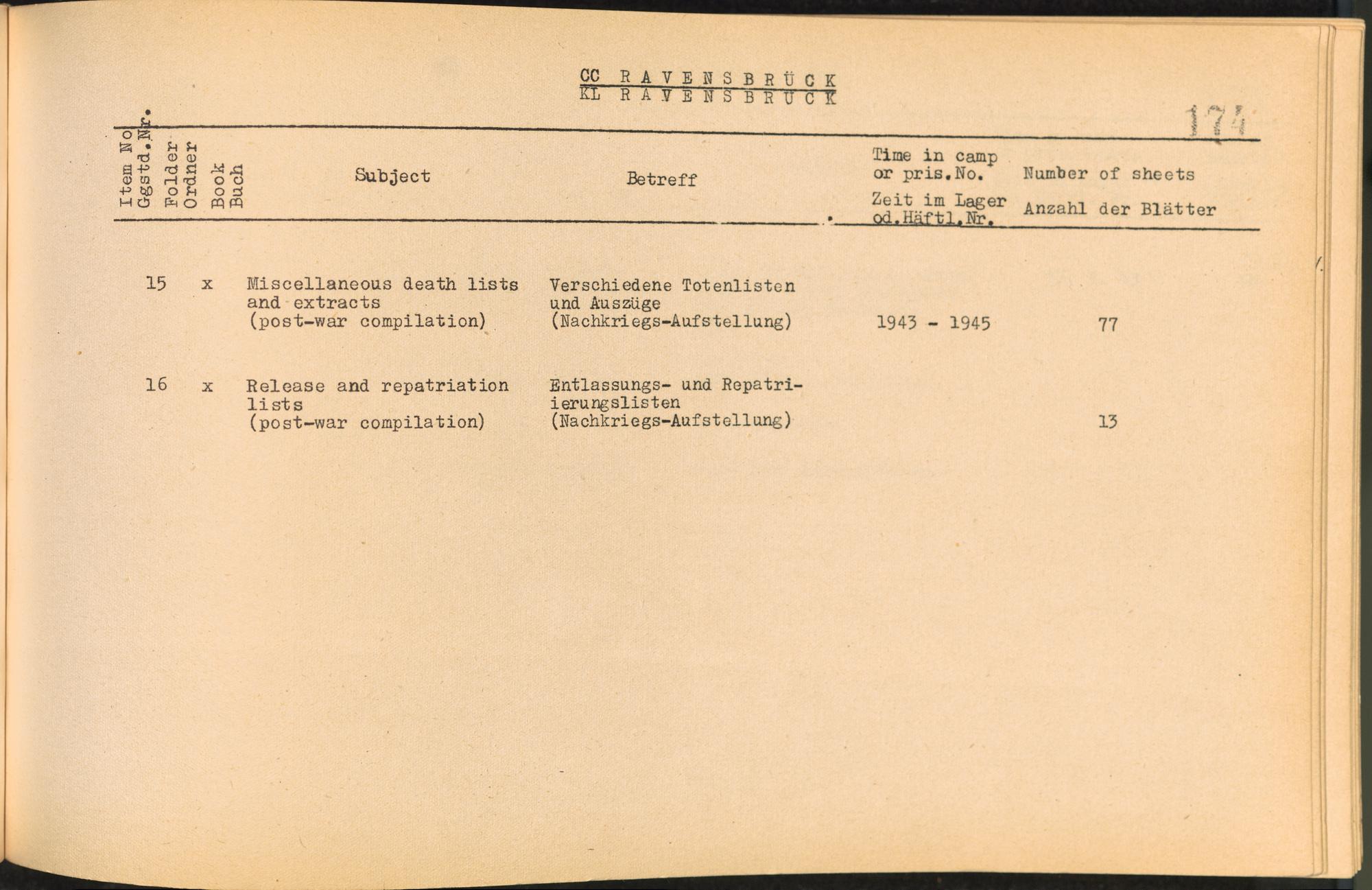 Catalogue of Records held by the International Tracing Service of the Allied High Commission For Germany at Arolsen : Vol. I