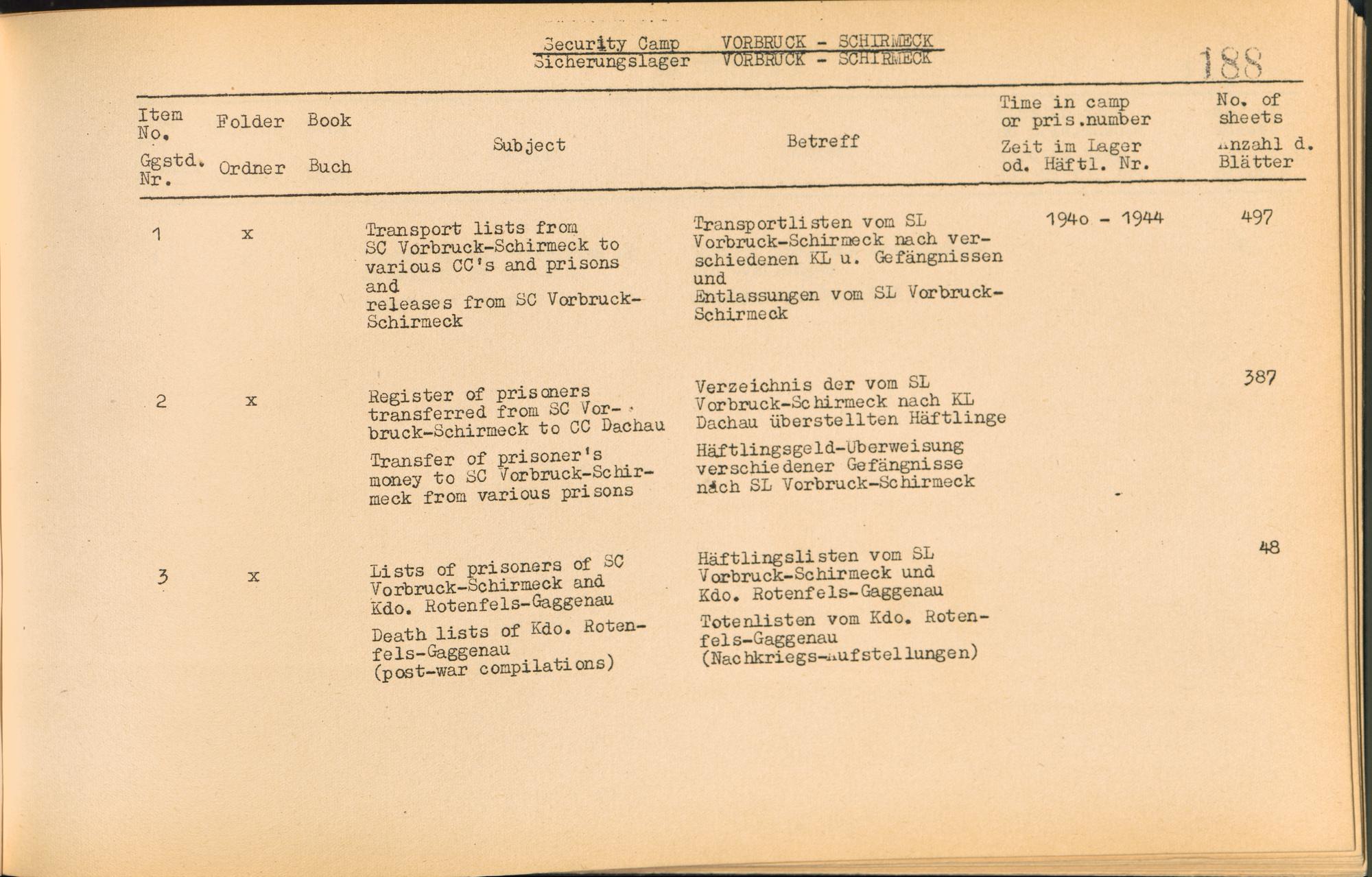 Catalogue of Records held by the International Tracing Service of the Allied High Commission For Germany at Arolsen : Vol. I