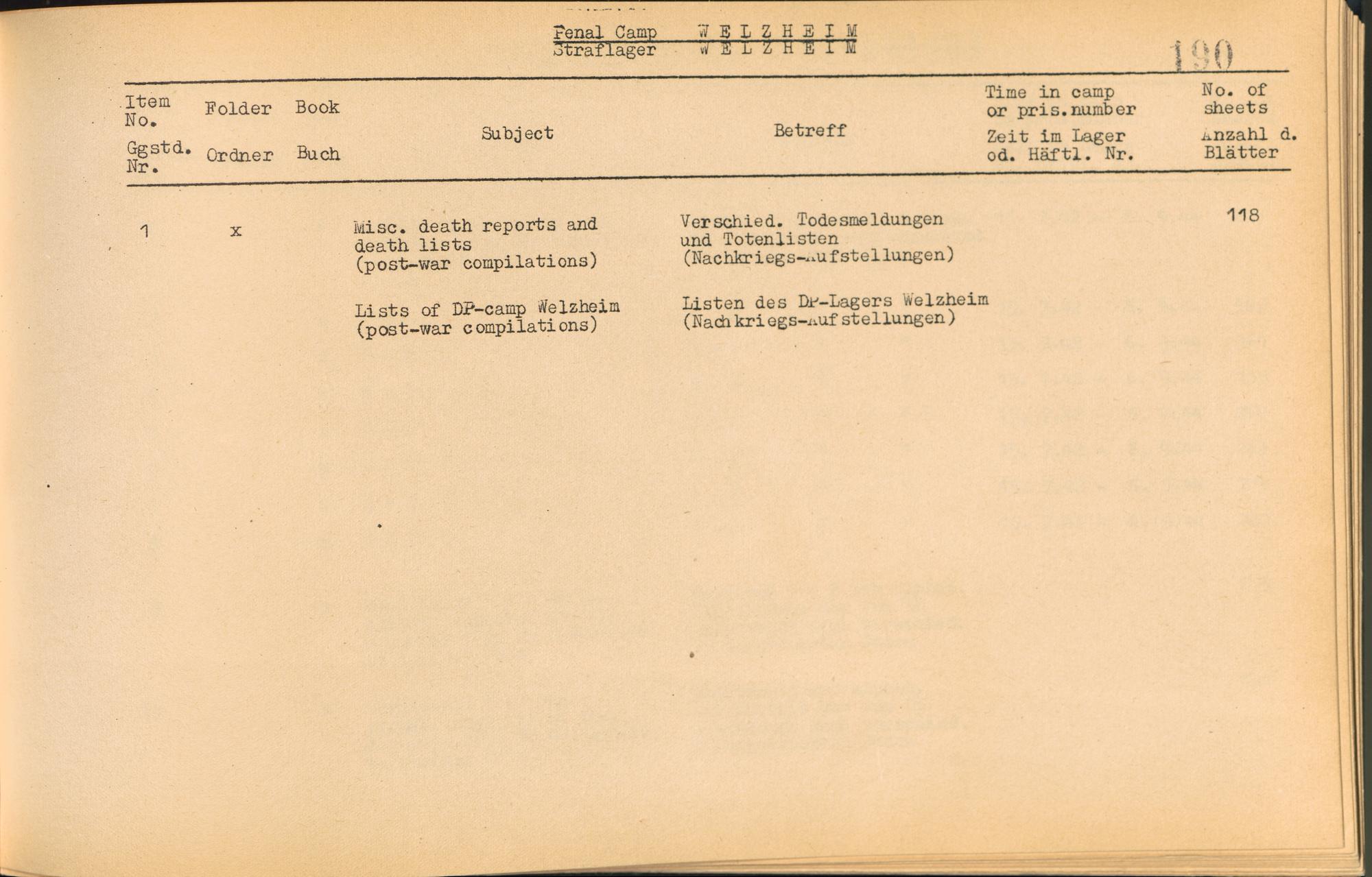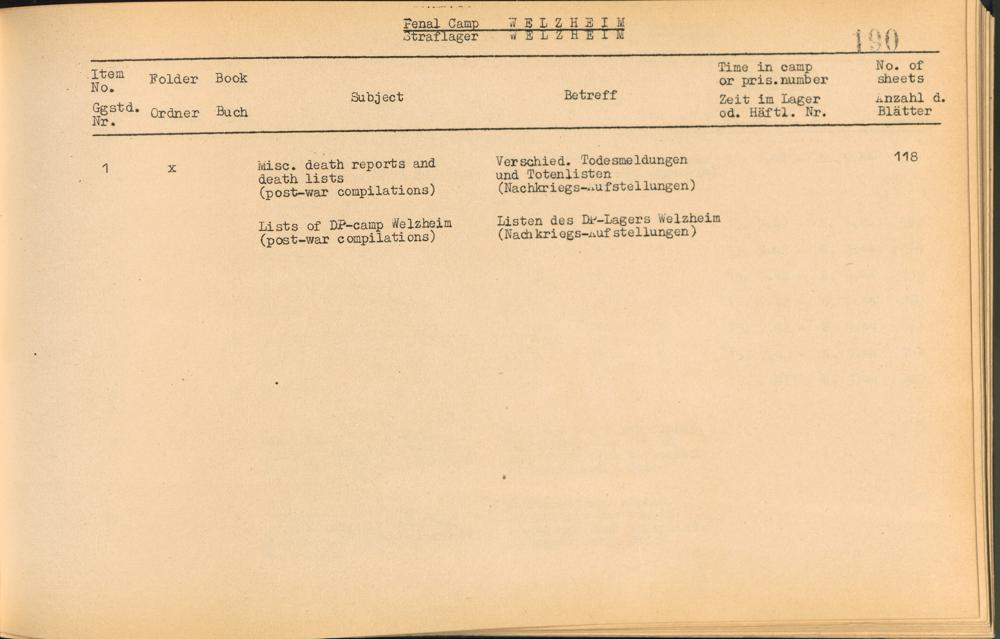 Catalogue of Records held by the International Tracing Service of the Allied High Commission For Germany at Arolsen : Vol. I