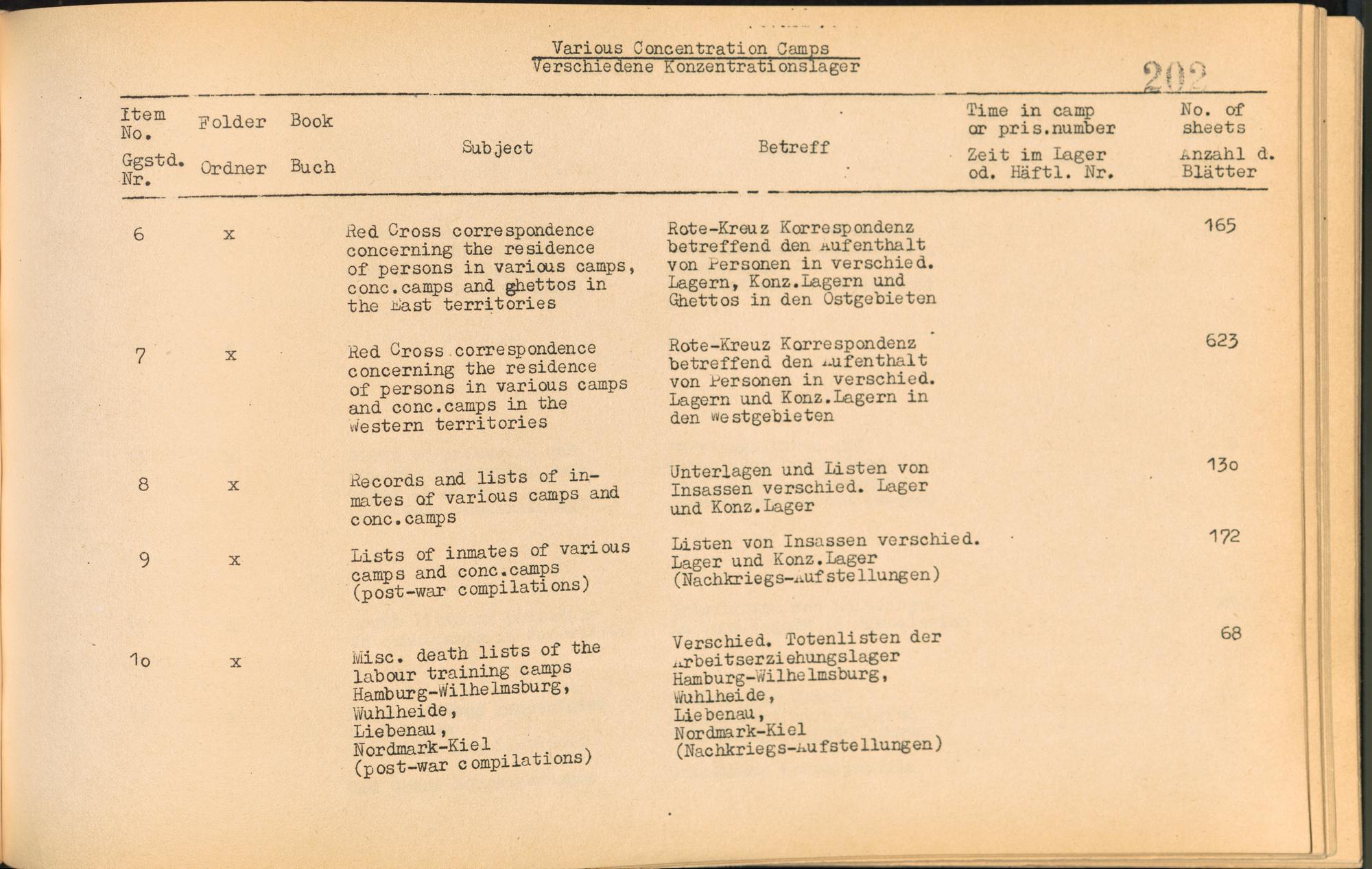 Catalogue of Records held by the International Tracing Service of the Allied High Commission For Germany at Arolsen : Vol. I