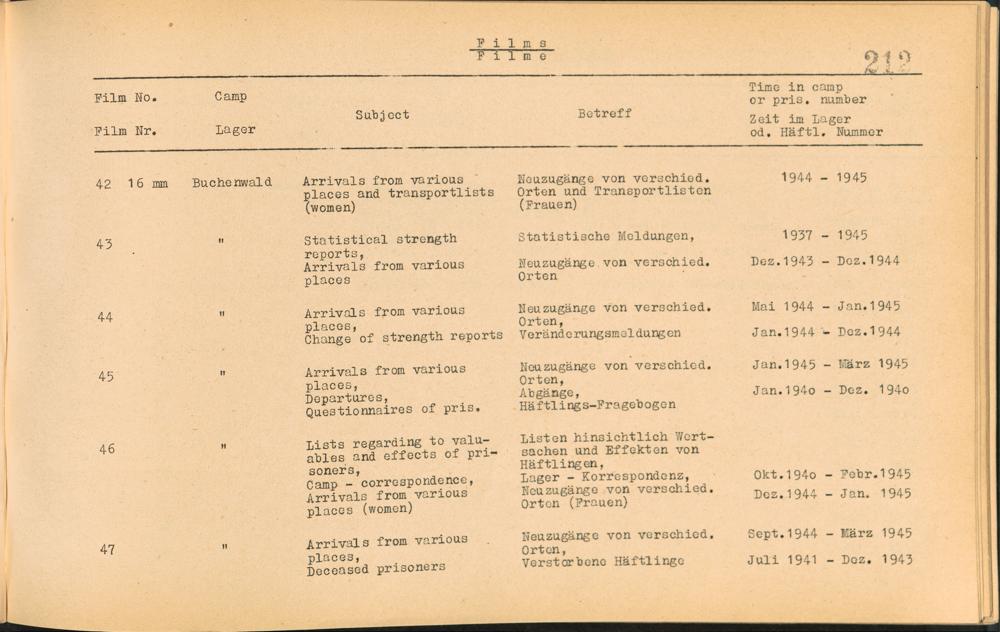 Catalogue of Records held by the International Tracing Service of the Allied High Commission For Germany at Arolsen : Vol. I