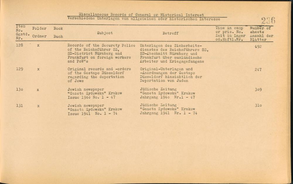 Catalogue of Records held by the International Tracing Service of the Allied High Commission For Germany at Arolsen : Vol. I