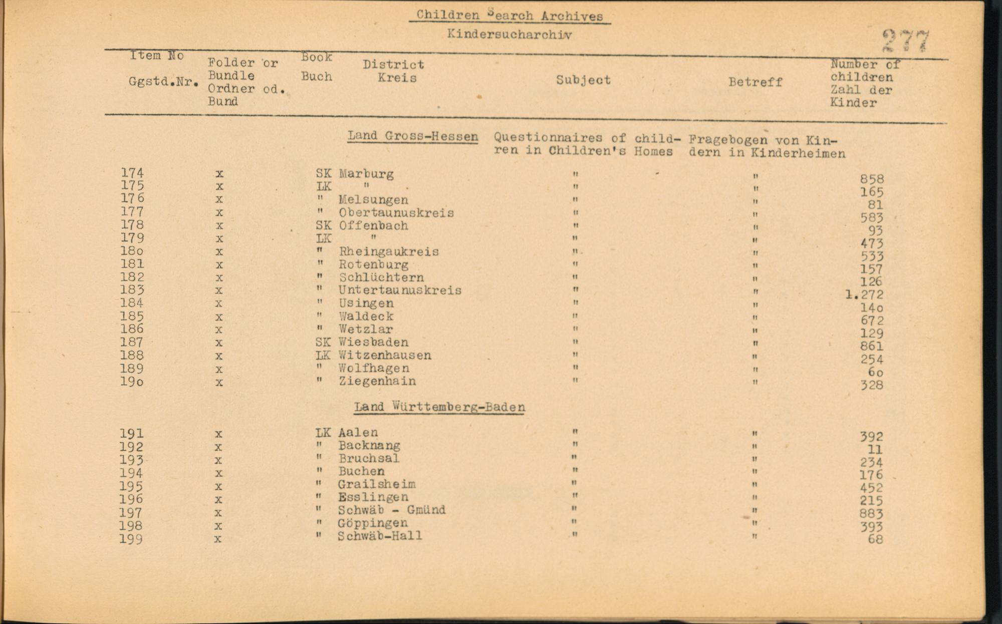 Catalogue of Records held by the International Tracing Service of the Allied High Commission For Germany at Arolsen : Vol. I