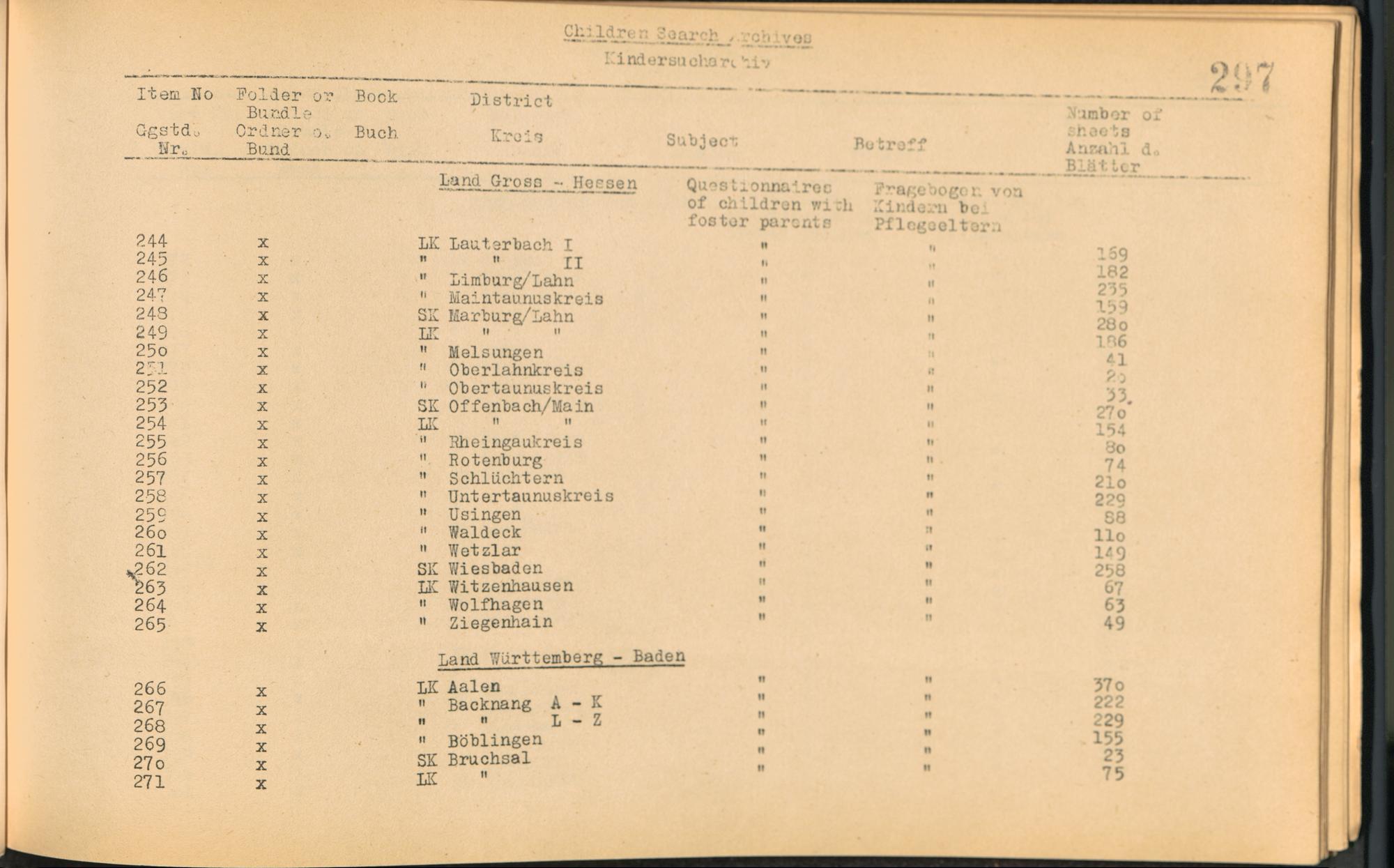 Catalogue of Records held by the International Tracing Service of the Allied High Commission For Germany at Arolsen : Vol. I