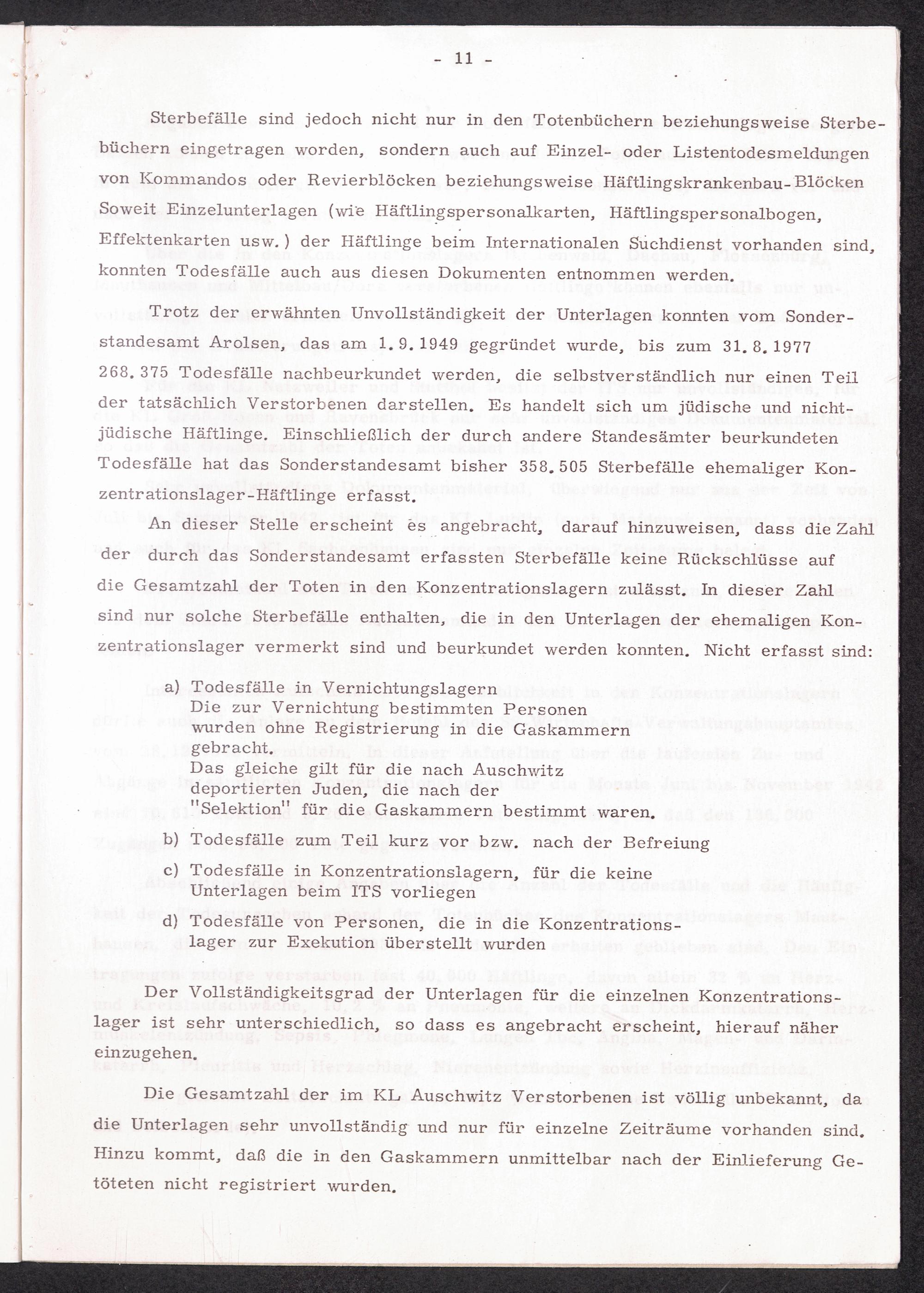 Der Internationale Suchdienst in Arolsen als Dokumentationszentrum der Verfolgungszeit und Hilfsquelle bei der Begutachtung von Gesundheitsschäden : Referat vor dem Deutschen Dokumentationszentrum für Gesundheitsschäden nach Gefangenschaft und Verfolgung anläßlich des III. Interdisziplinären Symposiums über die Folgen von Extrembelastungen vom 13. bis 15. Oktober 1977 in Köln