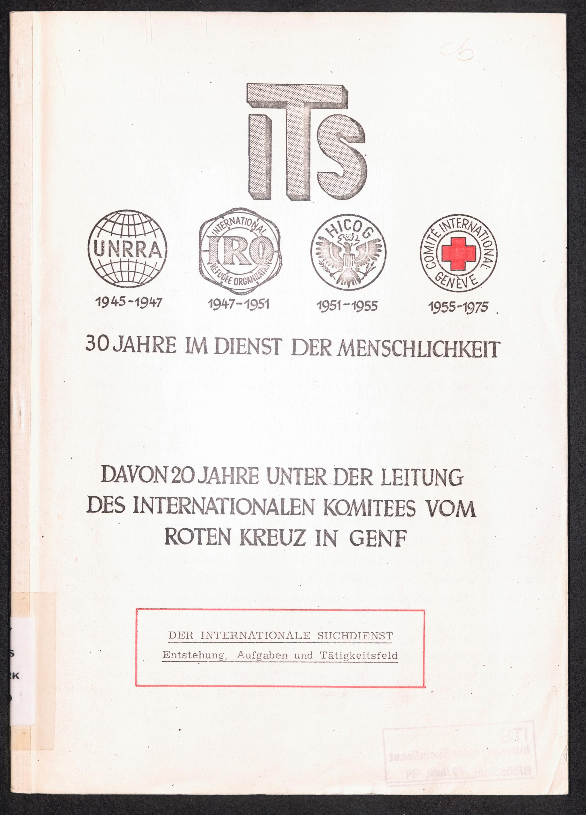Der Internationale Suchdienst : Entstehung, Aufgaben und Tätigkeitsfeld - 30 Jahre im Dienst der Menschlichkeit. Davon 20 Jahre unter der Leitung des Internationalen Komitees vom Roten Kreuz in Genf