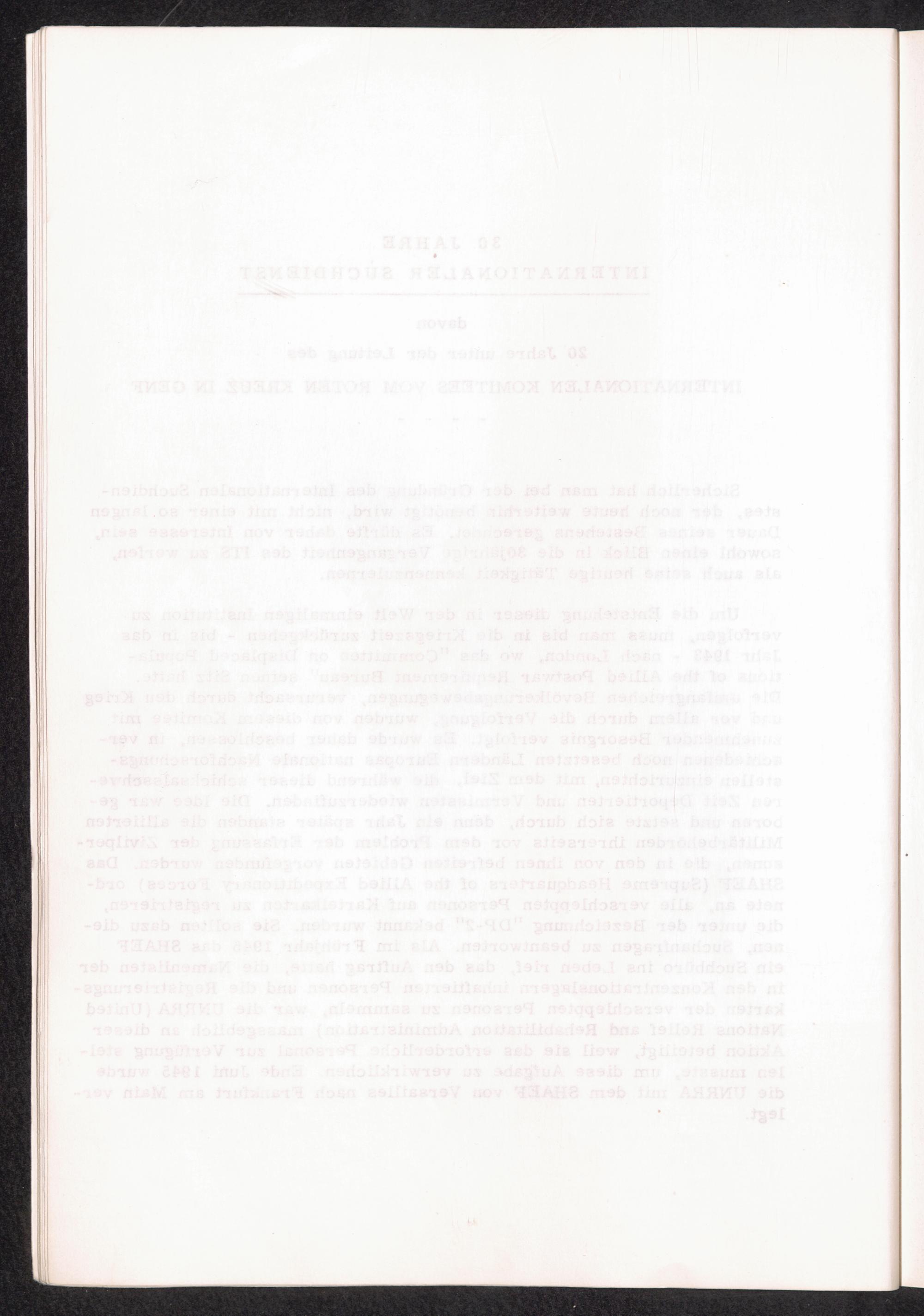 30 Jahre Internationaler Suchdienst, davon 20 Jahre unter der Leitung des Internationalen Komitees vom Roten Kreuz in Genf / International Tracing Service
