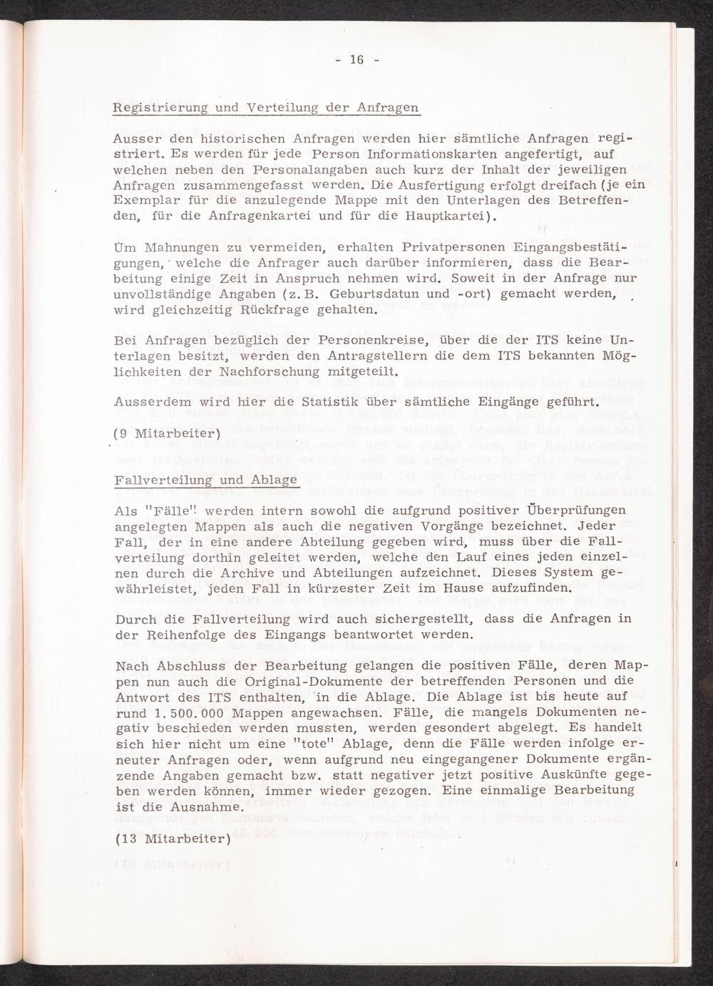 30 Jahre Internationaler Suchdienst, davon 20 Jahre unter der Leitung des Internationalen Komitees vom Roten Kreuz in Genf / International Tracing Service