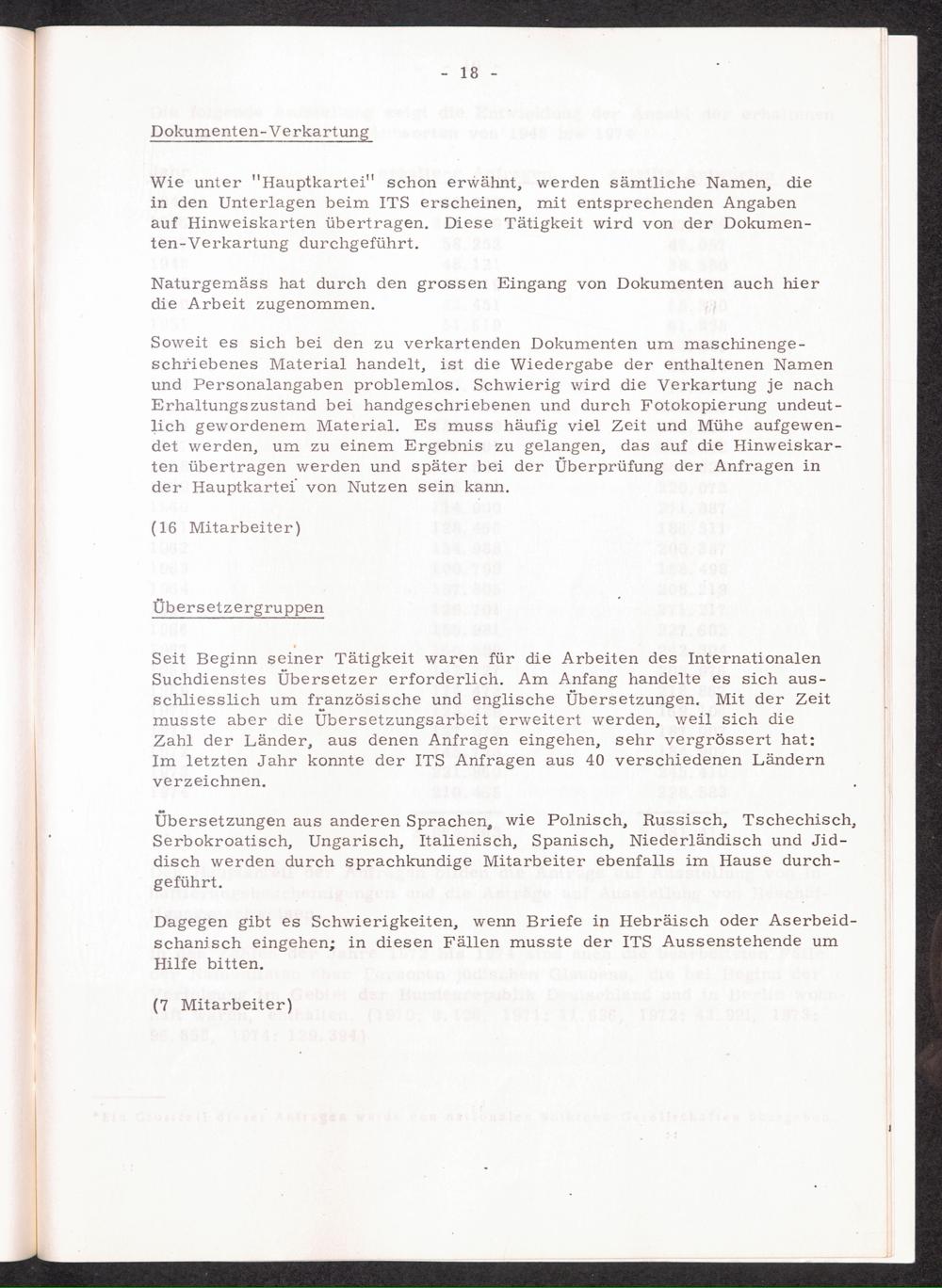 30 Jahre Internationaler Suchdienst, davon 20 Jahre unter der Leitung des Internationalen Komitees vom Roten Kreuz in Genf / International Tracing Service
