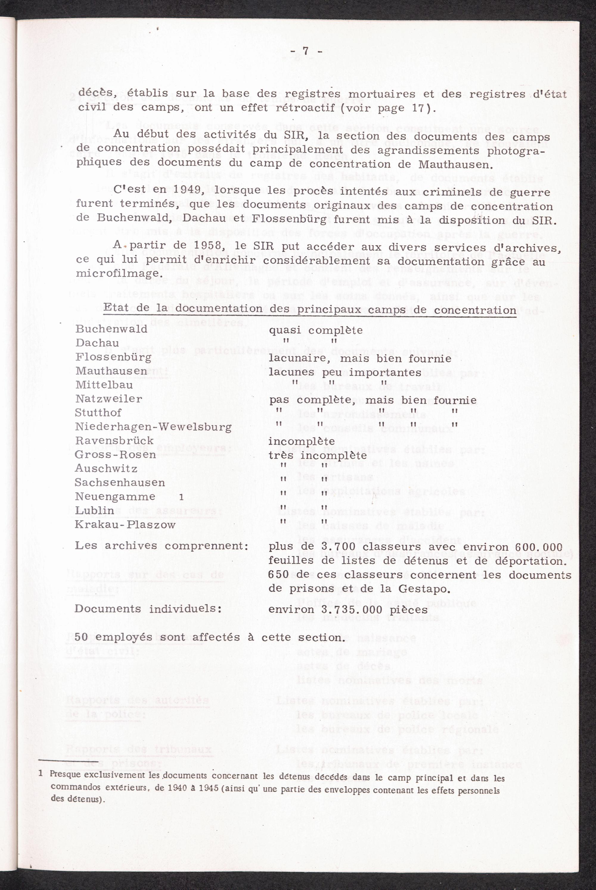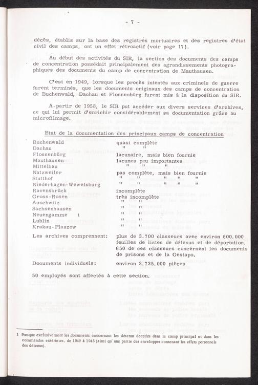 La Service International de Recherches Les Archives du SIR Section des Documents des Camps de Concentration
