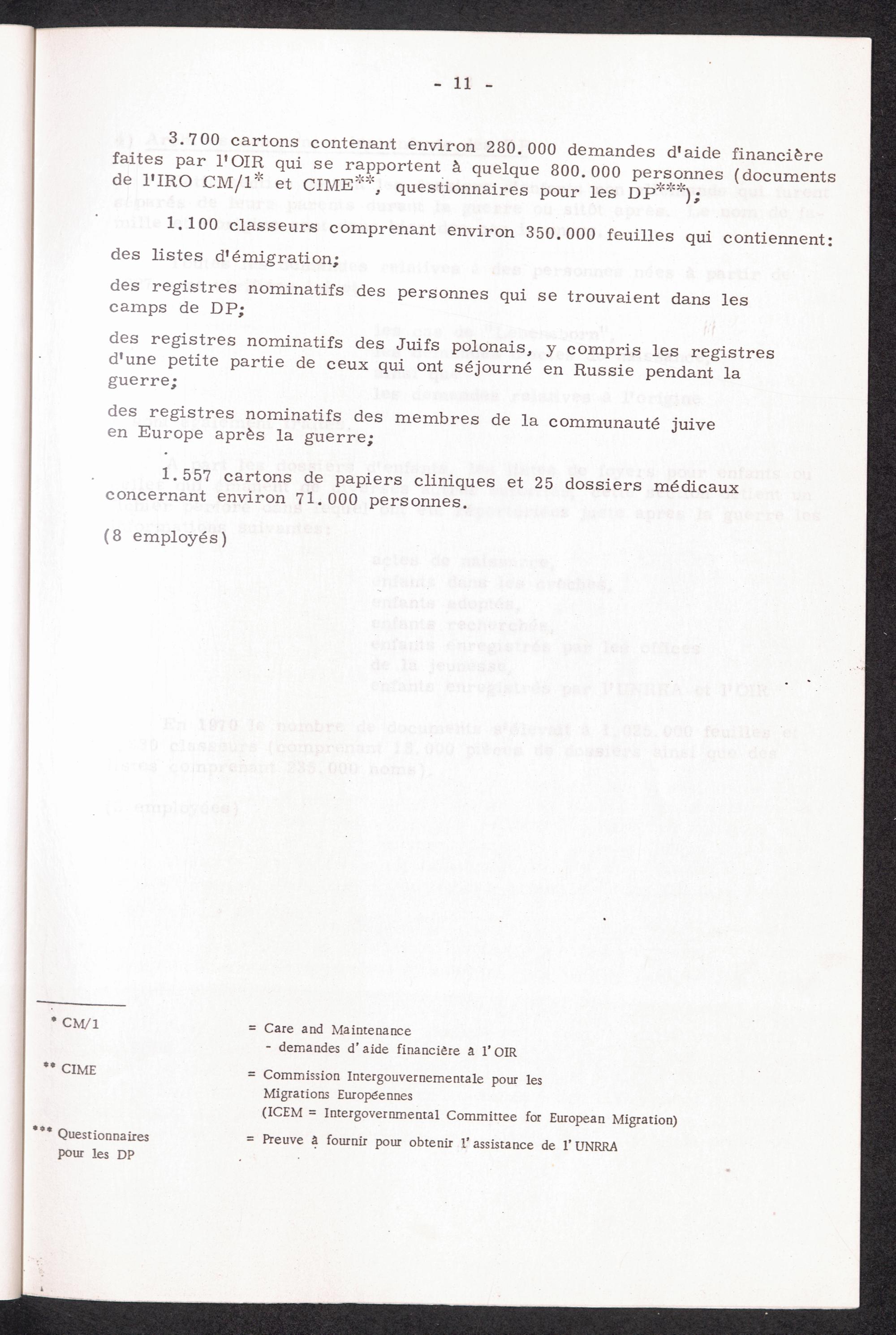 La Service International de Recherches Les Archives du SIR Section des documents de la Période de l'après-guerre
