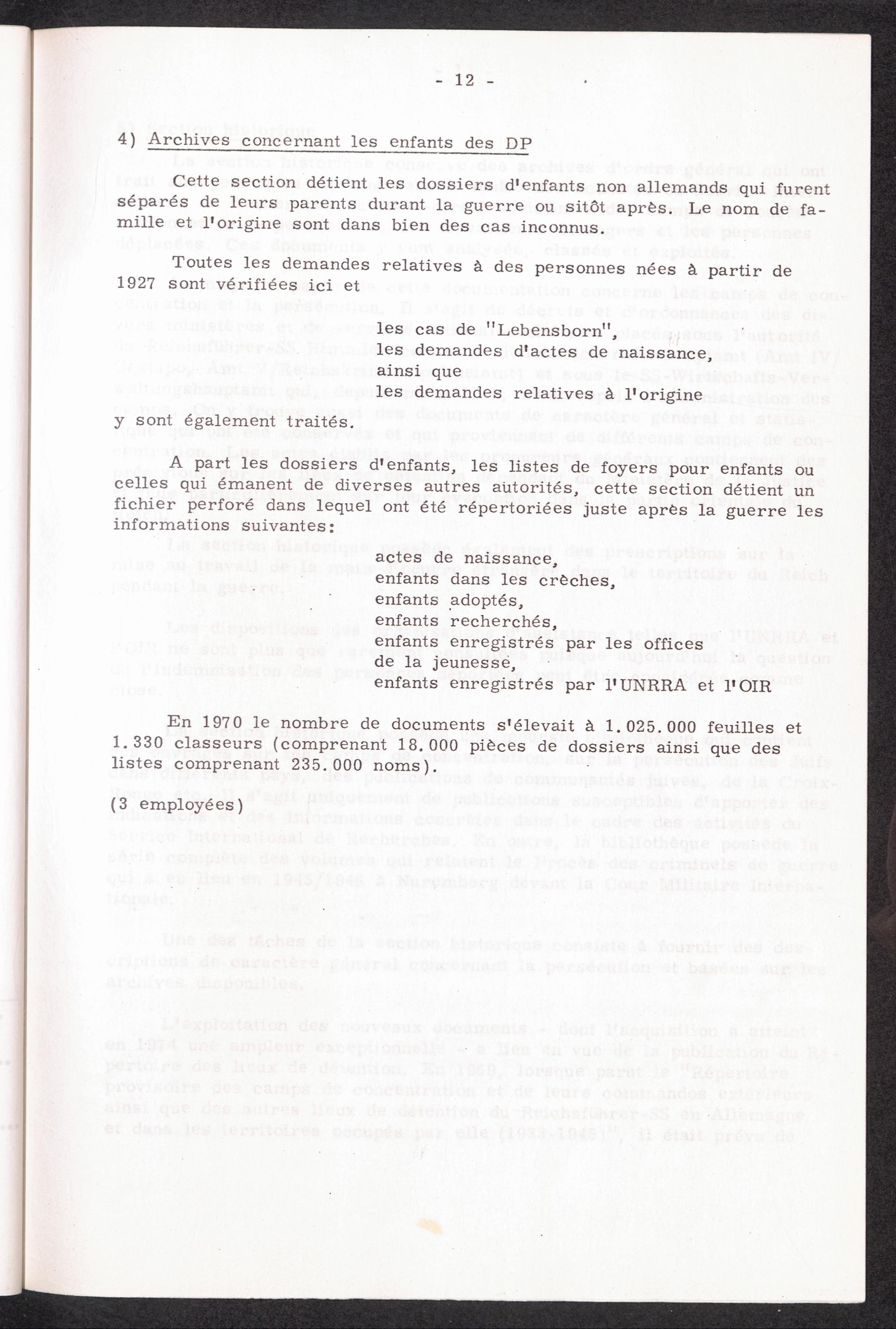 La Service International de Recherches Les Archives du SIR Archives concernant les enfants des DP