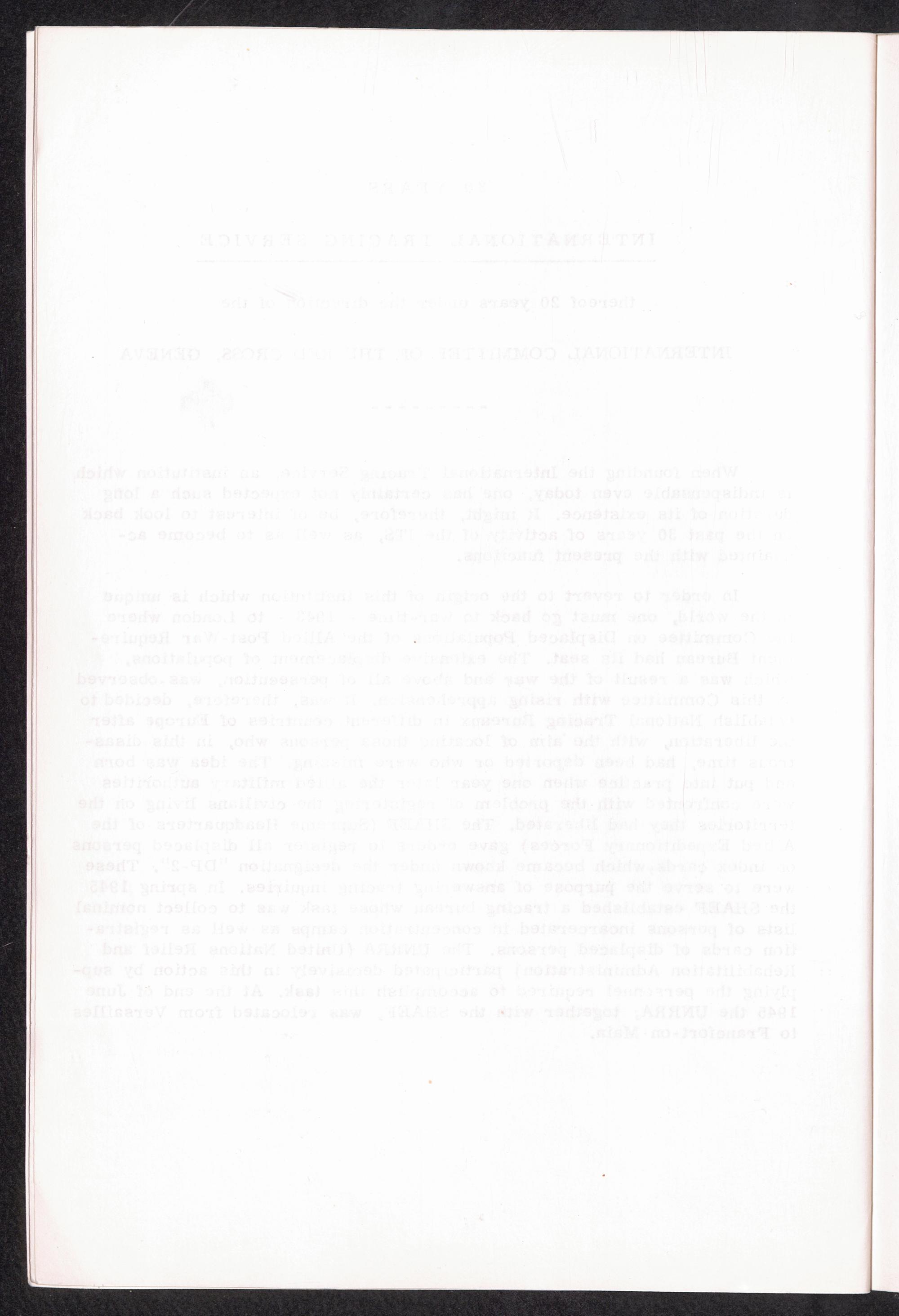 30 years Interational Tracing Service thereof 20 years under the direction of the International Committee of the Red Cross, Geneva / International Tracing Service