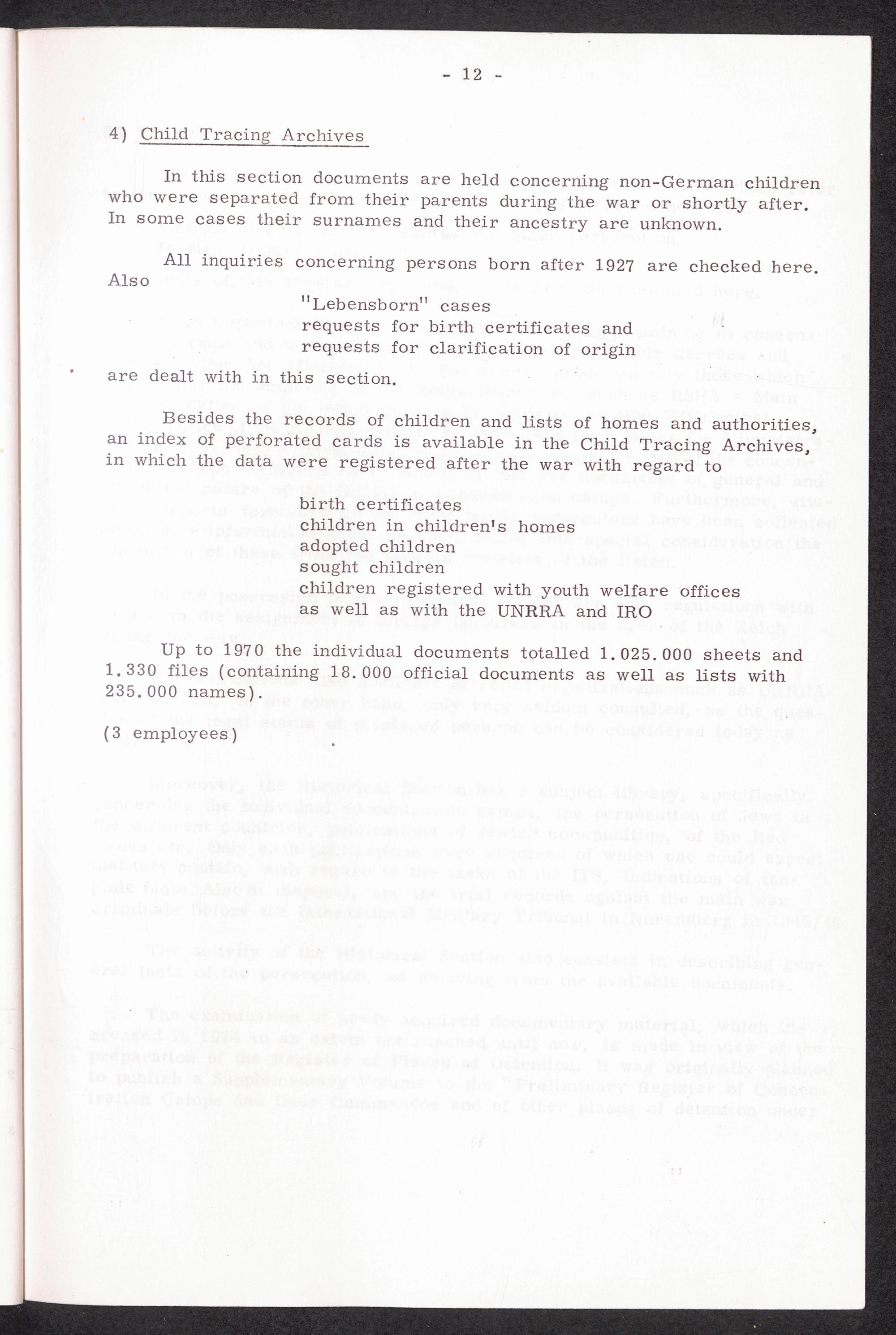 30 years Interational Tracing Service thereof 20 years under the direction of the... The Archives of the ITS Child Tracing Archives