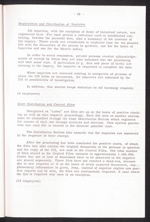 30 years Interational Tracing Service thereof 20 years under the direction of the... The Archives of the ITS Registration and Distribution of Inquiries