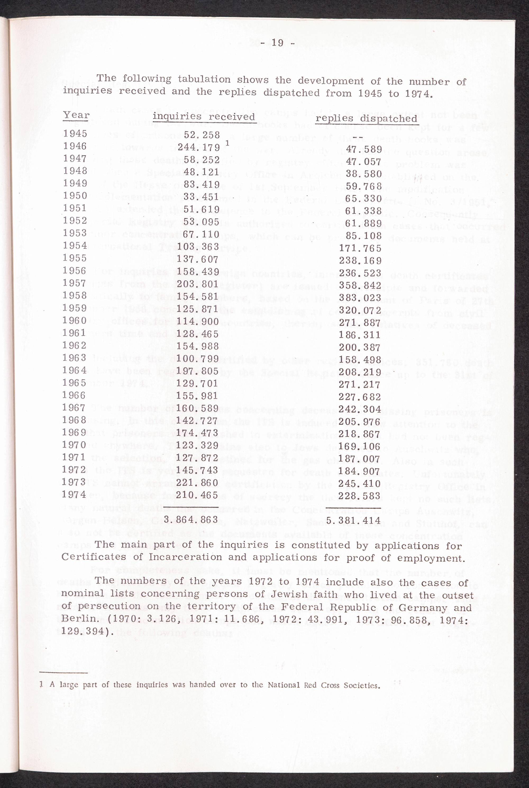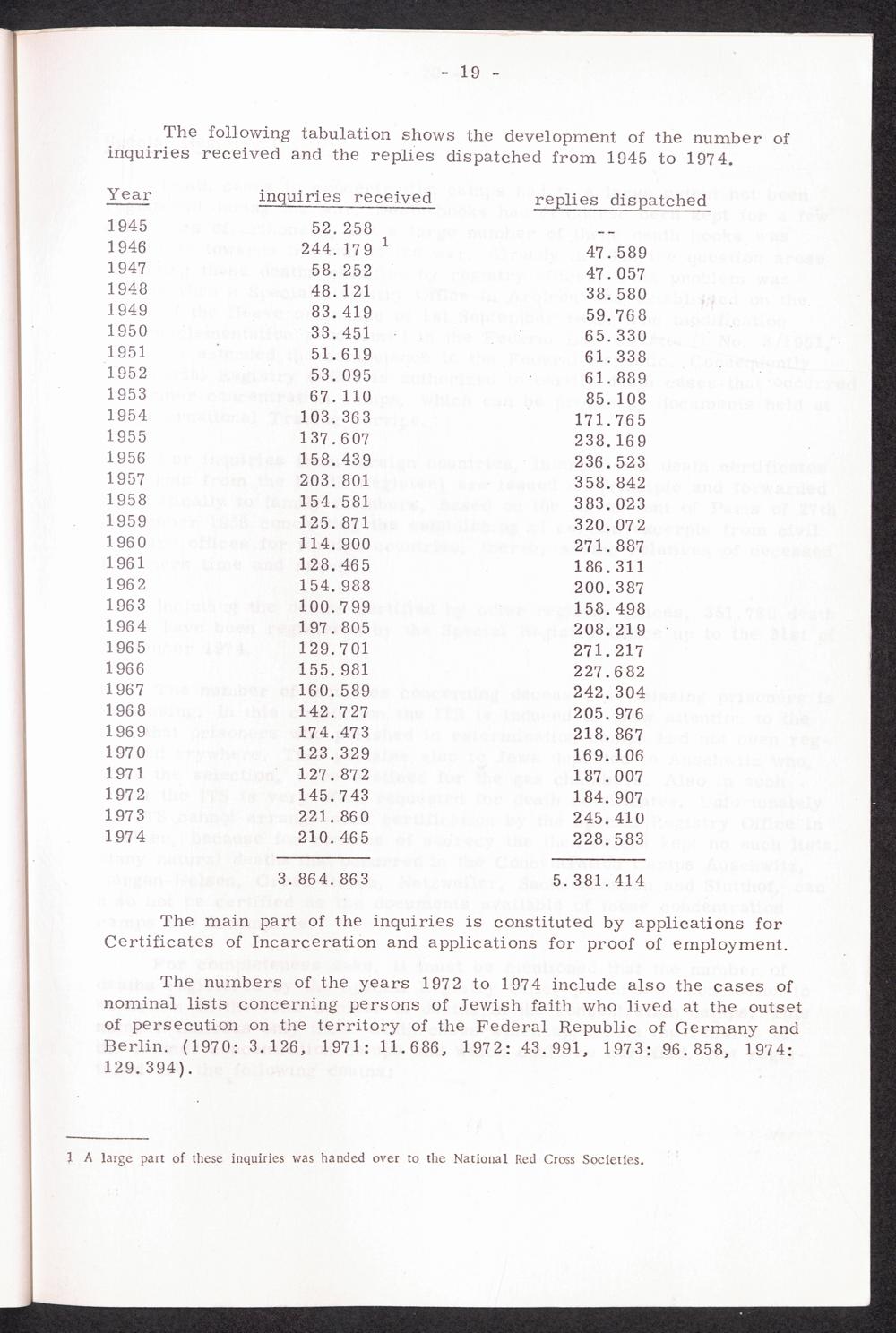30 years Interational Tracing Service thereof 20 years under the direction of the International Committee of the Red Cross, Geneva / International Tracing Service