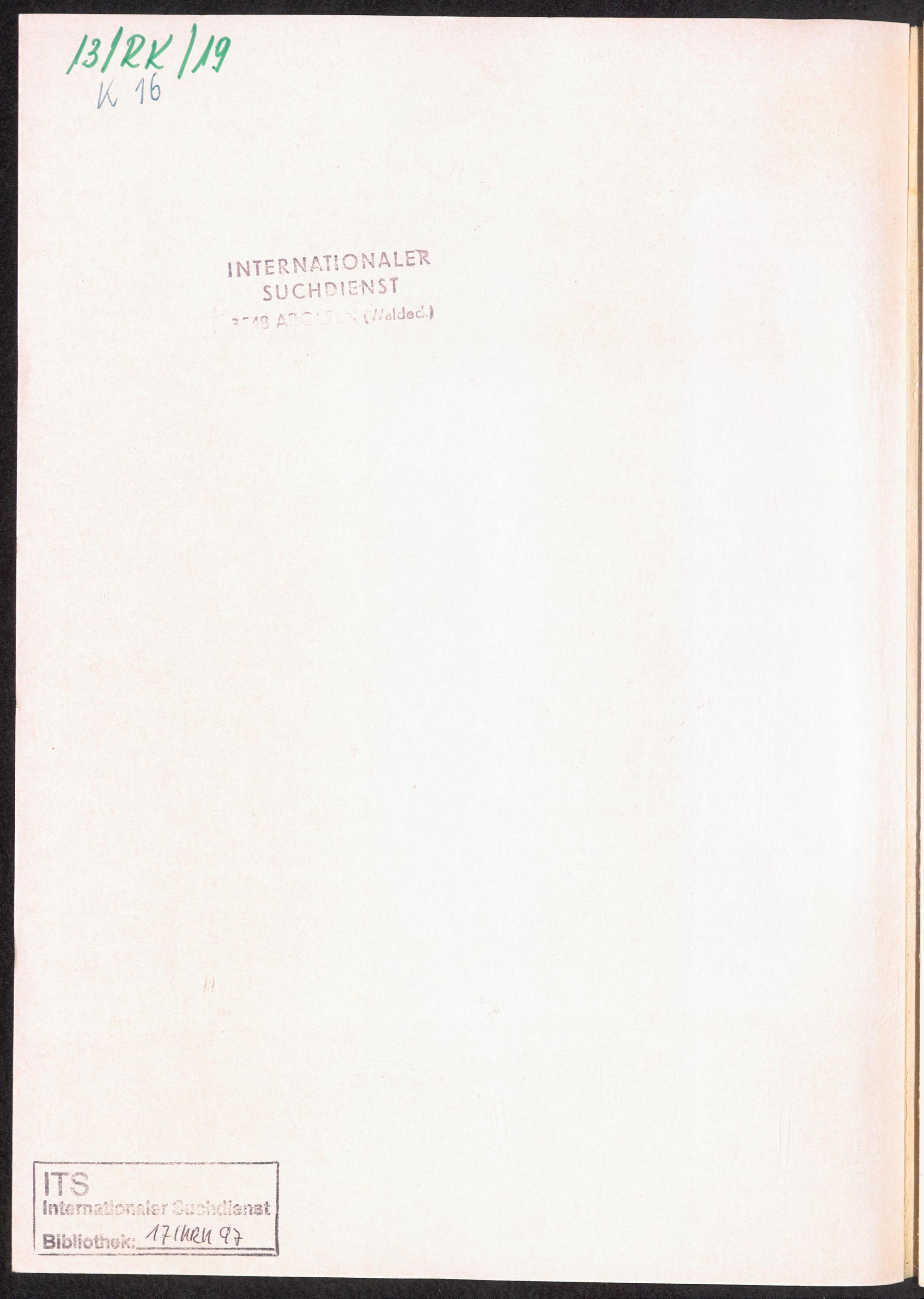 Der Internationale Suchdienst in Arolsen (1945 - 1965) Vordeckel Innenseite / Stempel