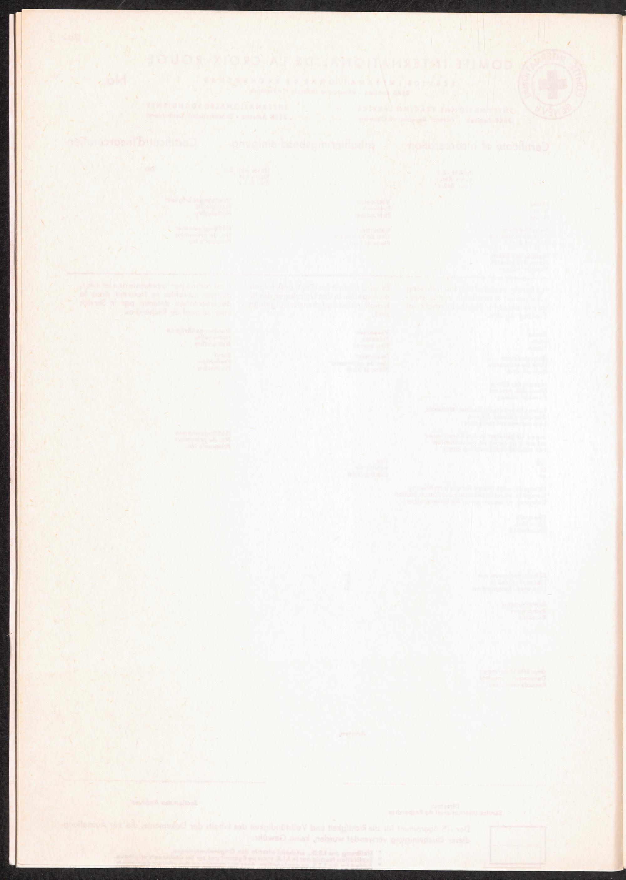 Der Internationale Suchdienst in Arolsen (1945 - 1965) No. 1 Inhaftierungsbescheinigung (Beispiel)