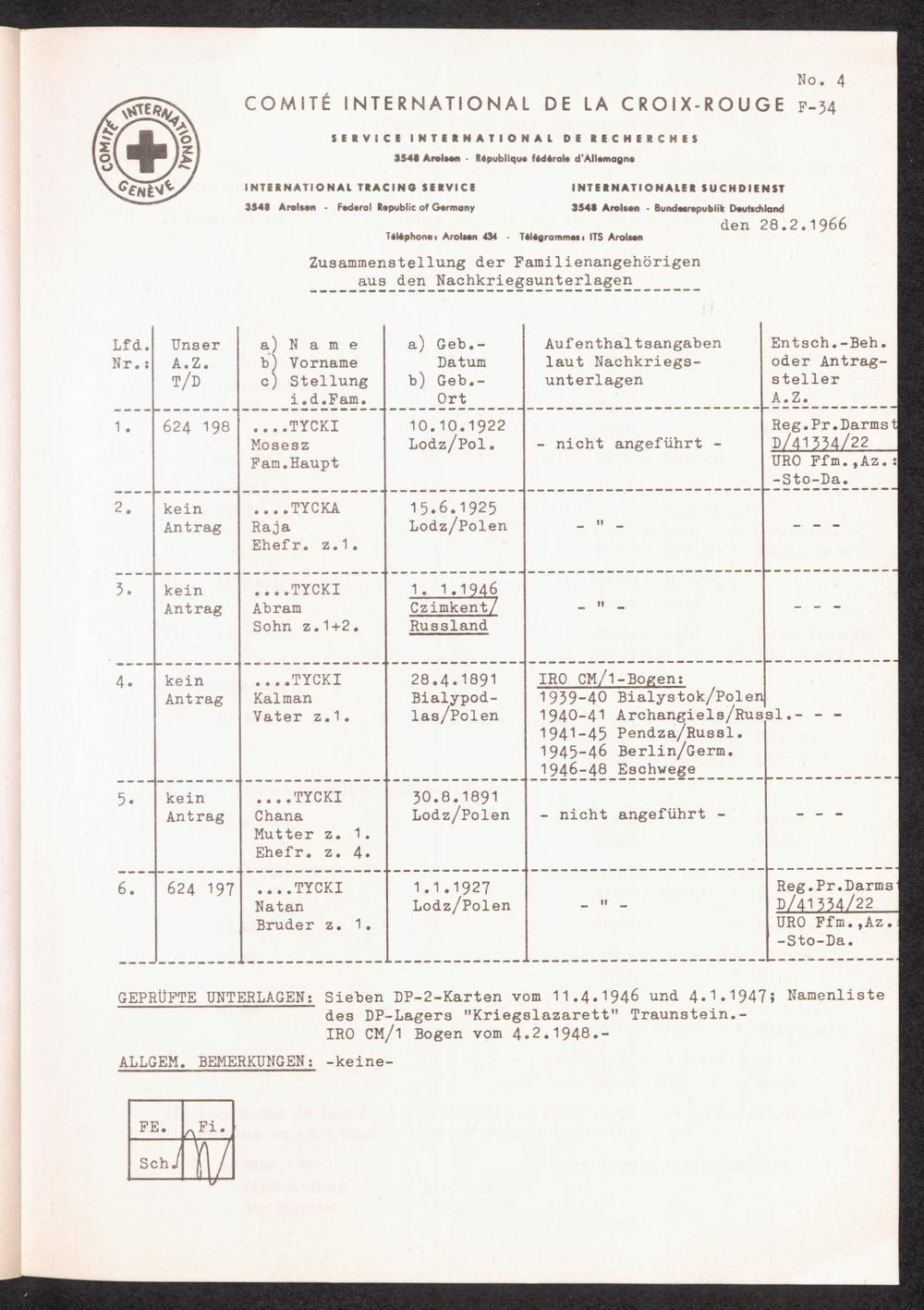 Le Service International de Recherches a Arolsen (1945-1965) No. 4 Zusammenstellung der Familienangehörigen aus den Nachkriegsunterlagen (Bei...