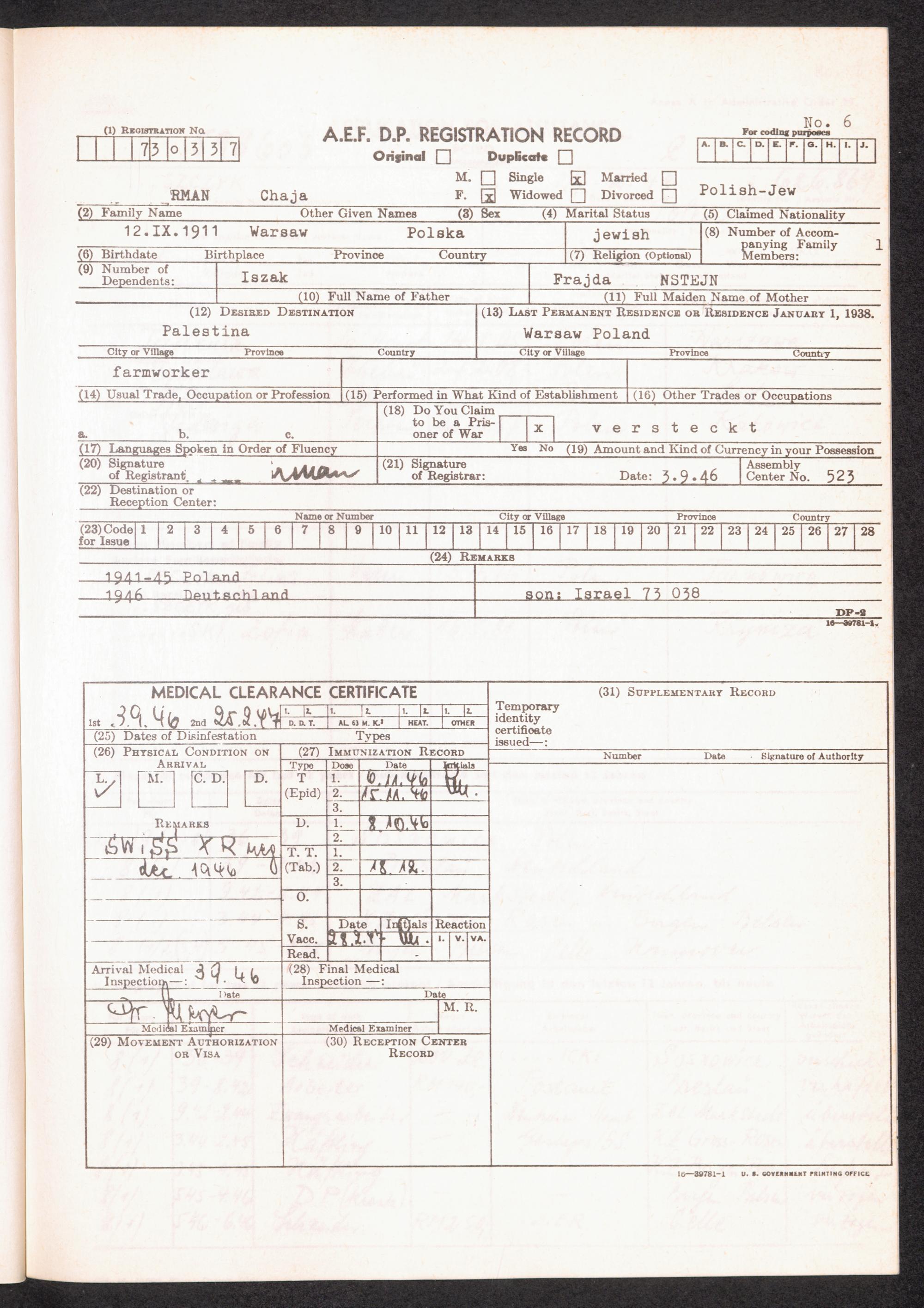 The International Tracing Service in Arolsen (1945-1965) No. 6 D.P. Registration Record
