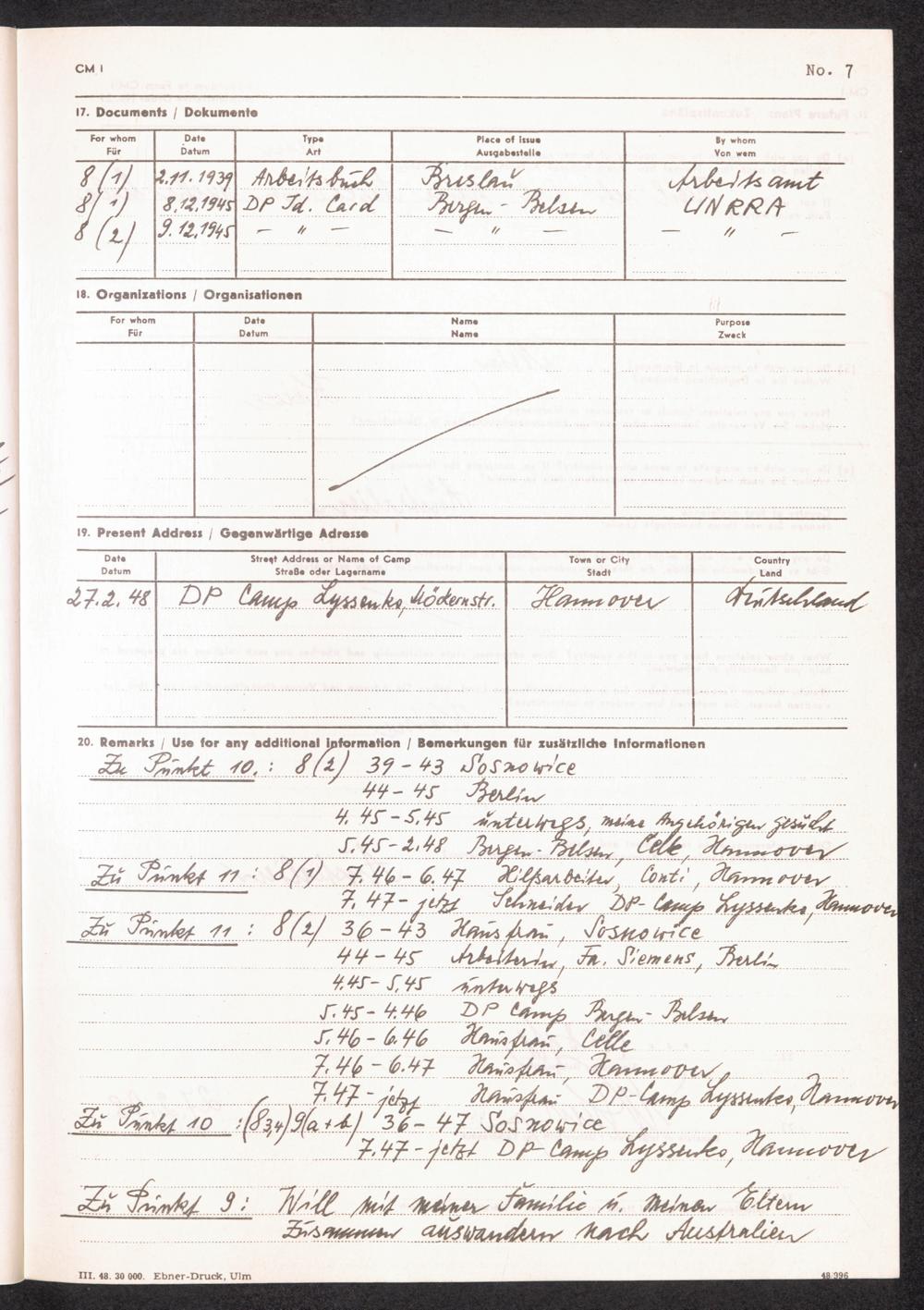 The International Tracing Service in Arolsen (1945-1965) No. 7 Application for Assistance PCIRO