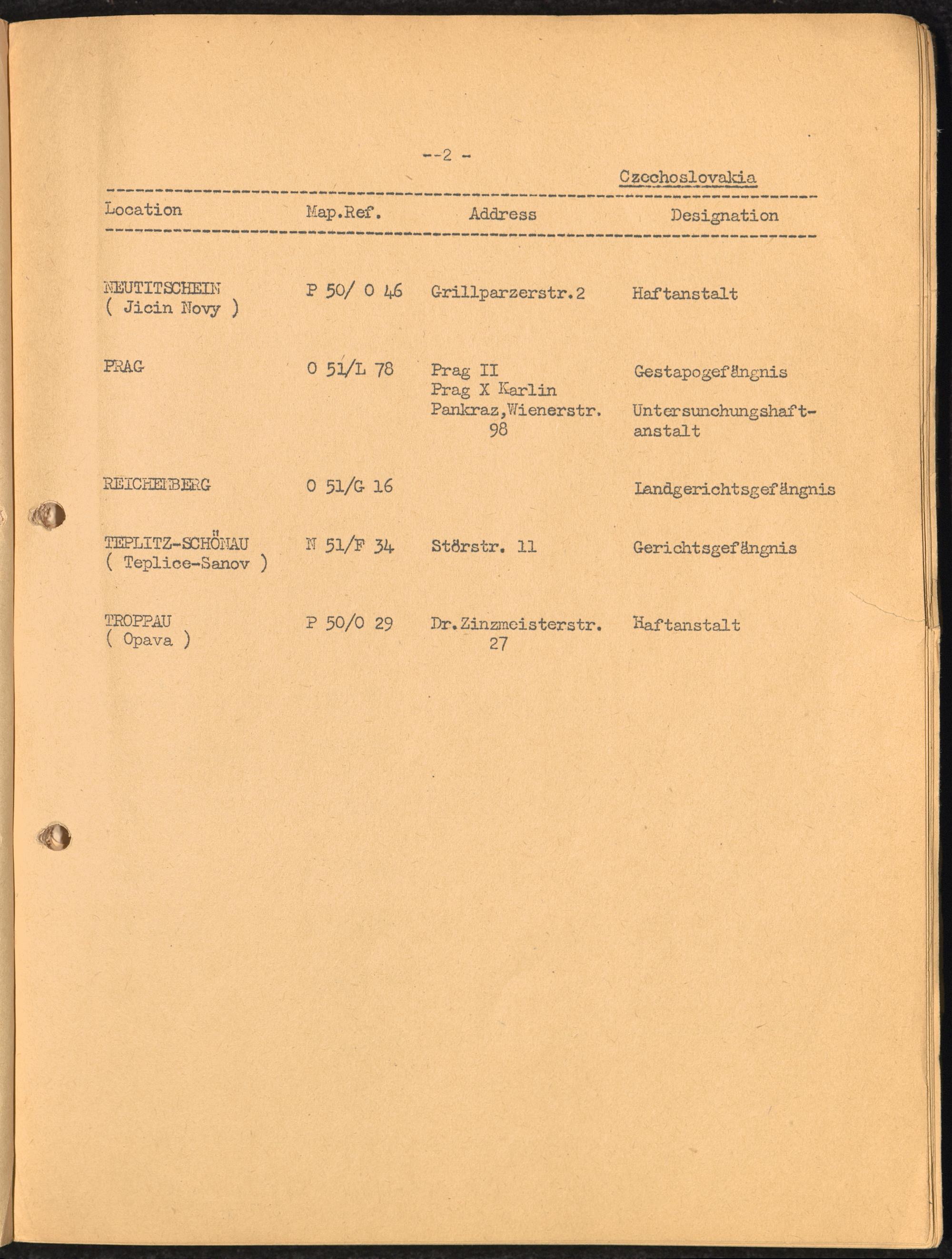 Location list of German Prisons 1939 - 1945 Czechoslovakia