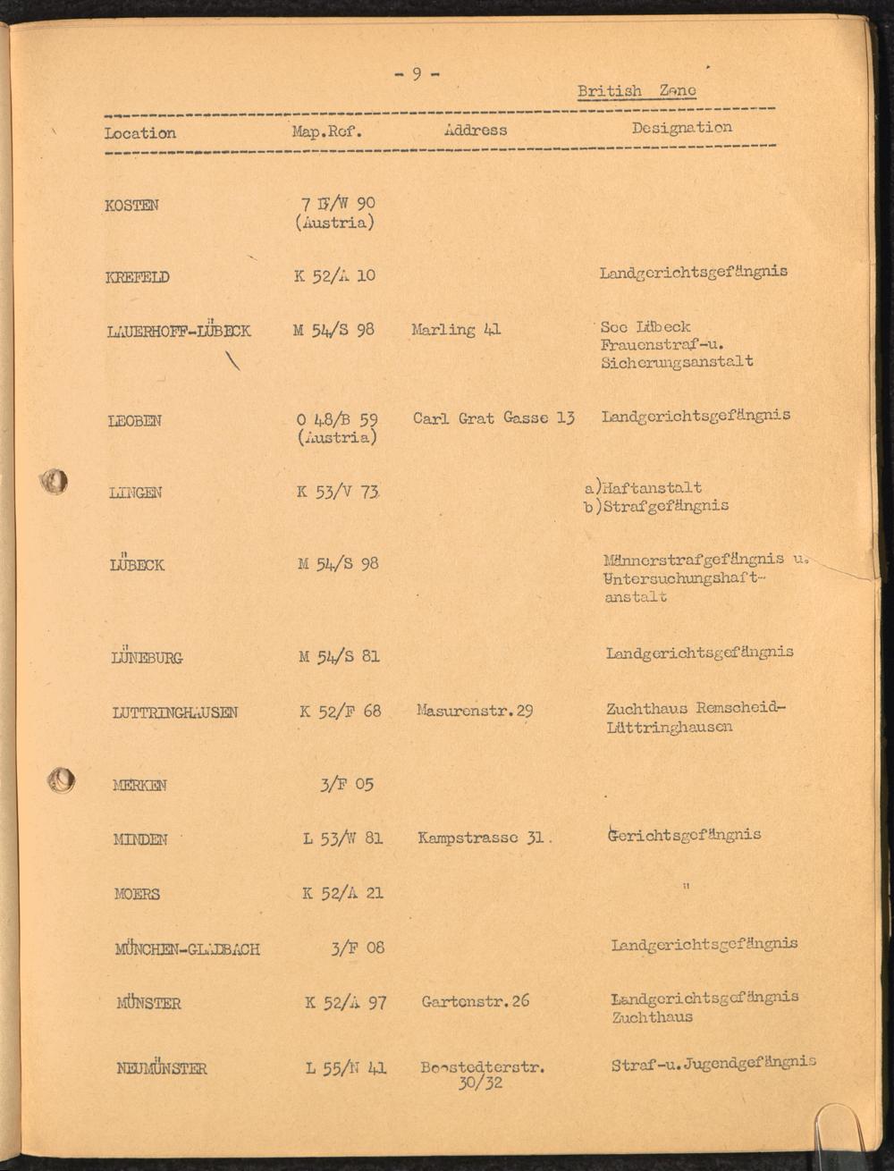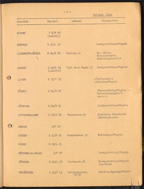 Location list of German Prisons 1939 - 1945 Germany and Austria British Zone