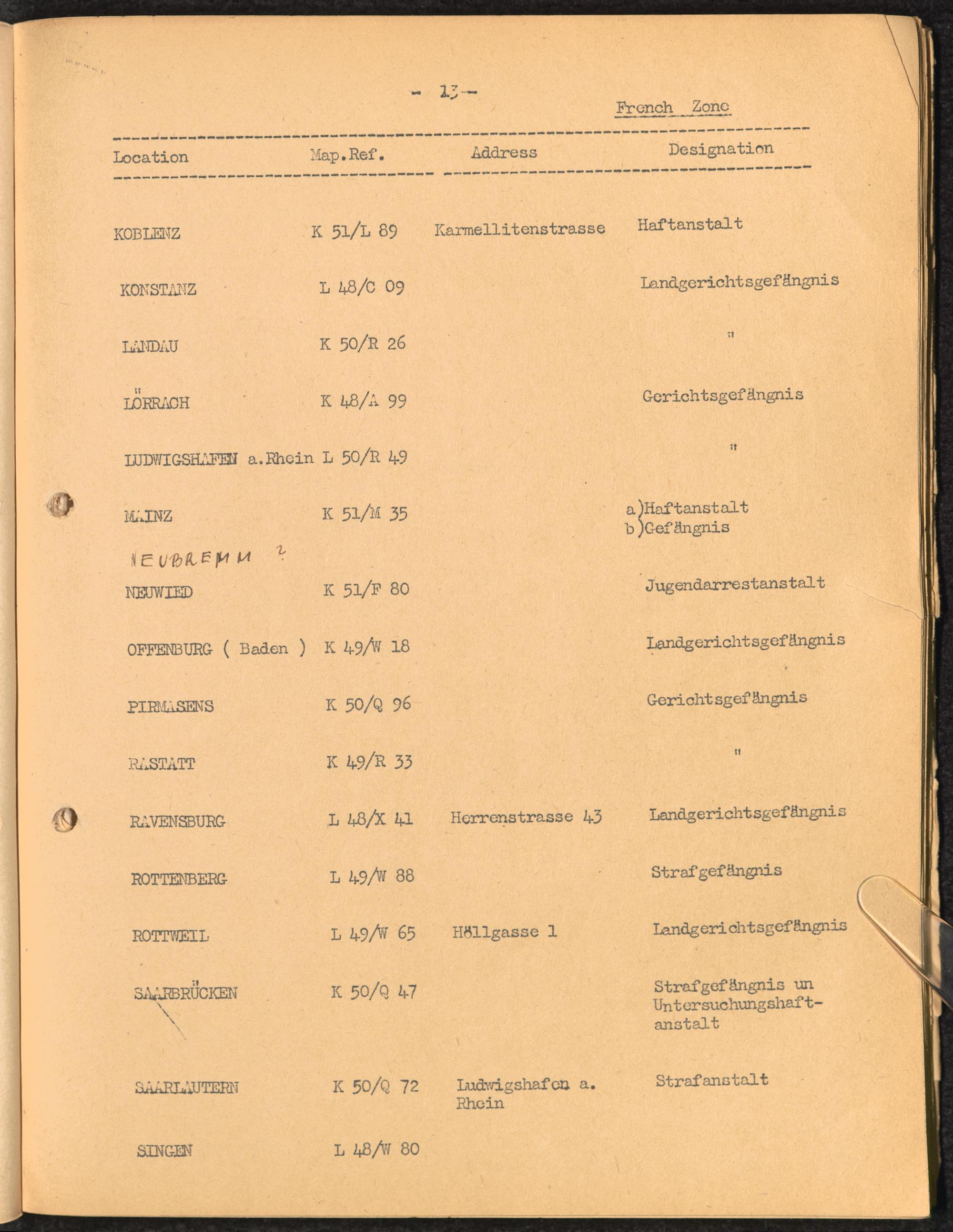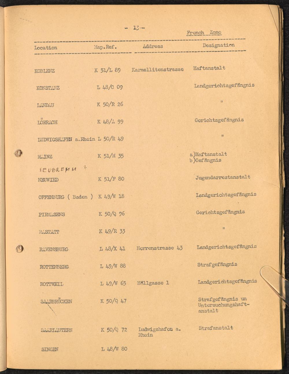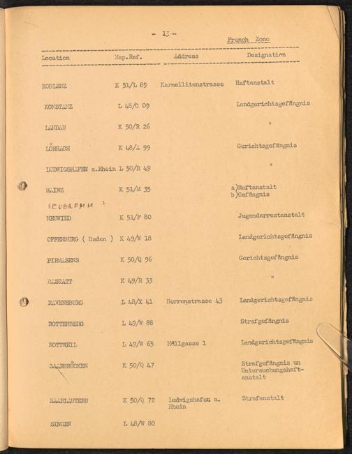 Location list of German Prisons 1939 - 1945 Germany and Austria French Zone