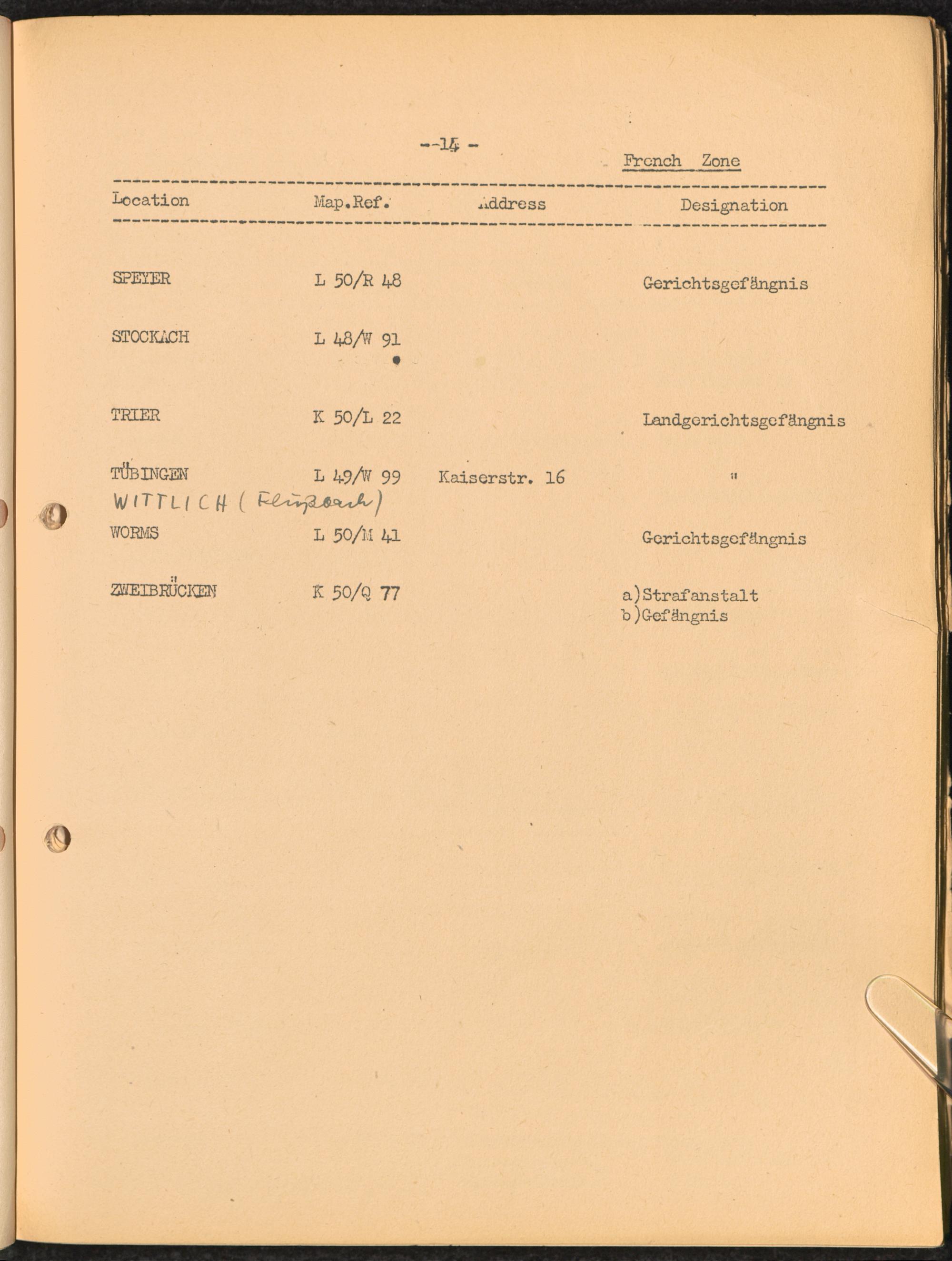 Location list of German Prisons 1939 - 1945 Germany and Austria French Zone