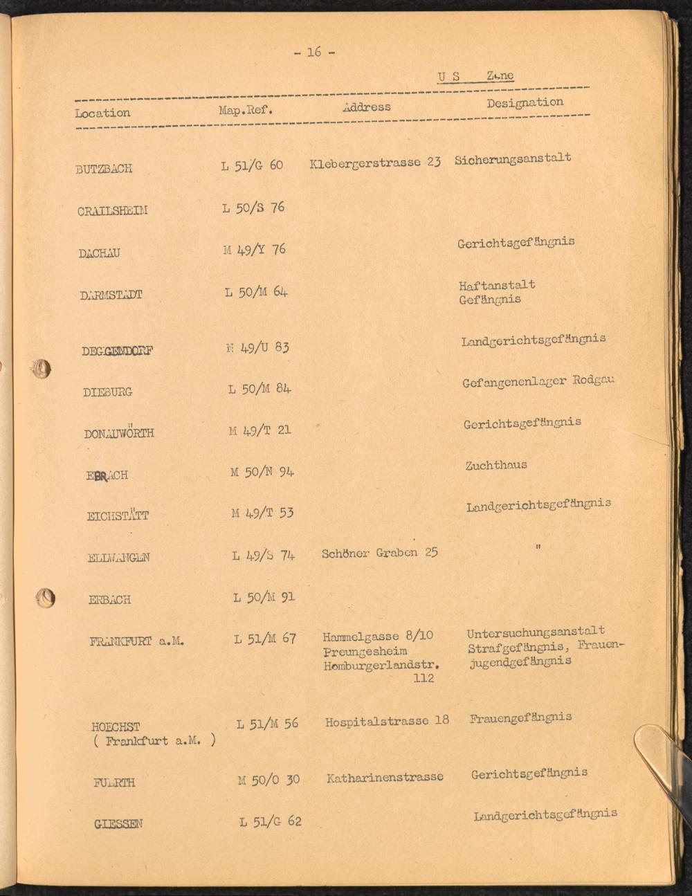 Location list of German Prisons 1939 - 1945 Germany and Austria US Zone