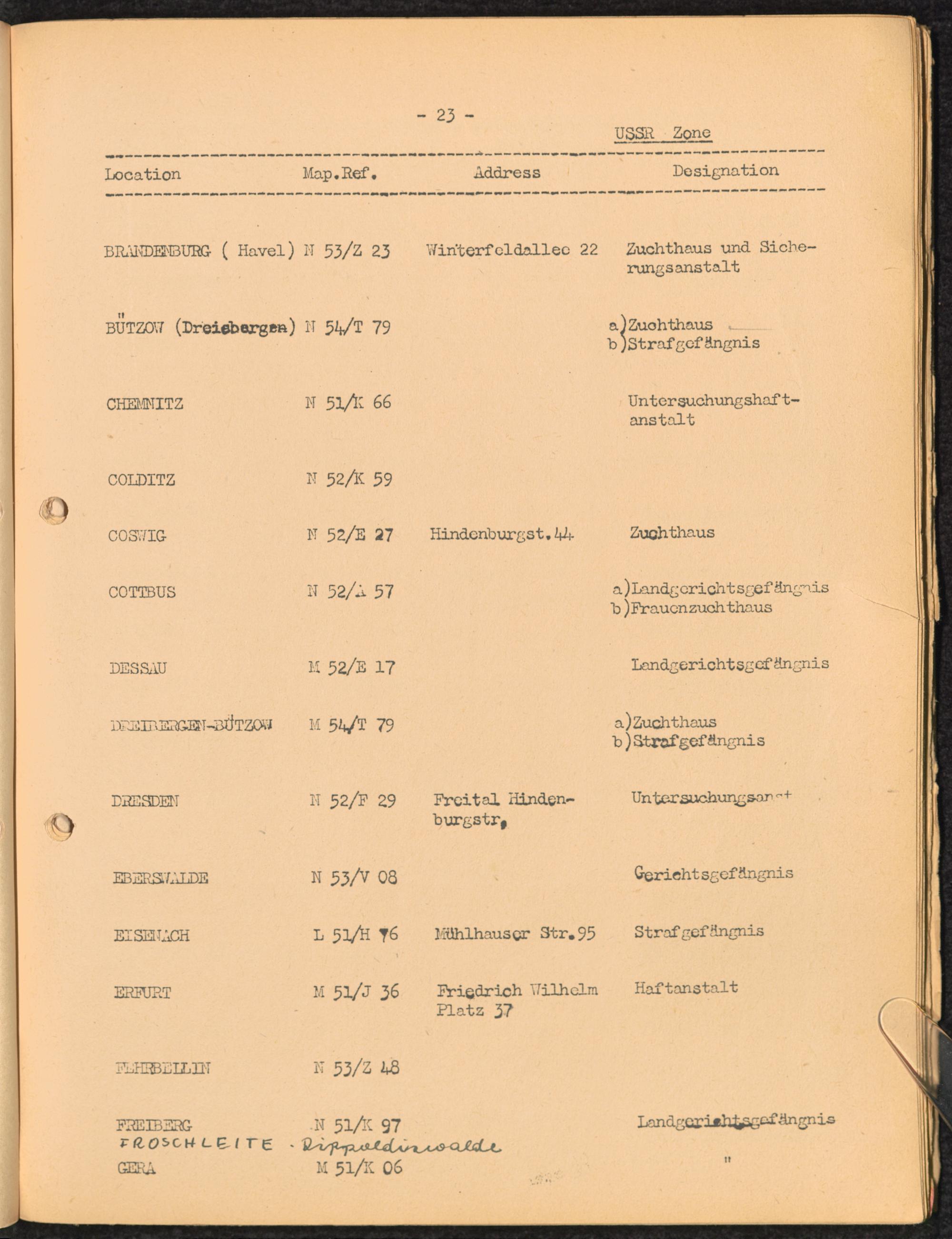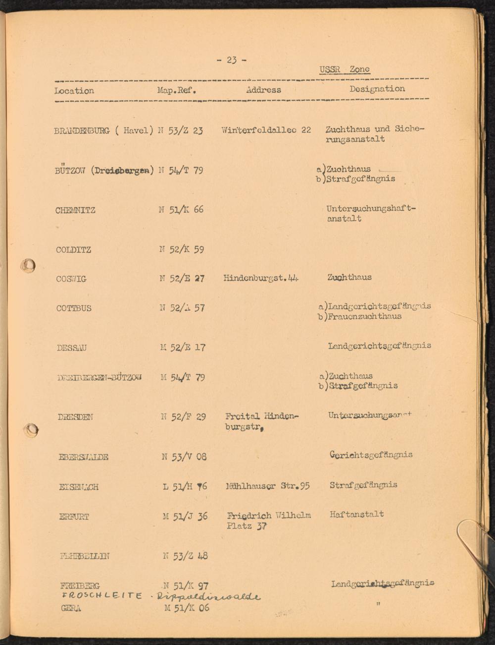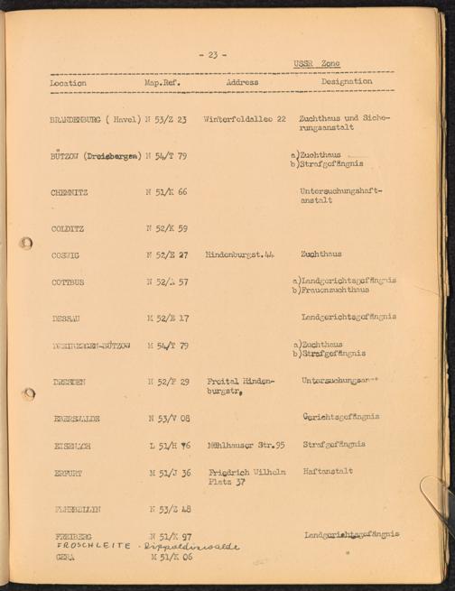 Location list of German Prisons 1939 - 1945 Germany and Austria USSR Zone