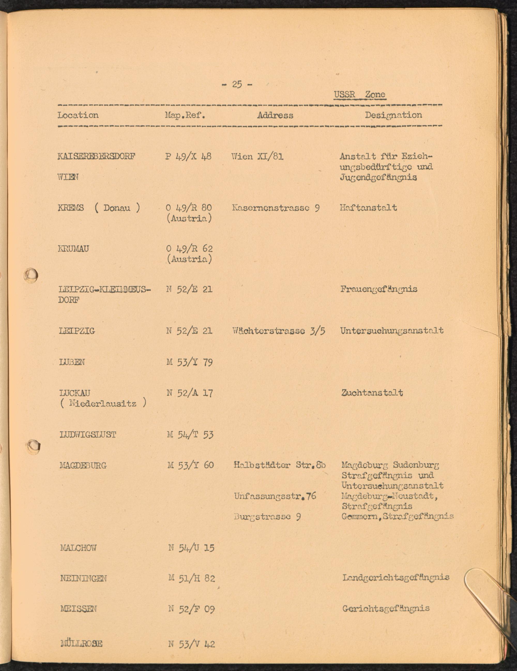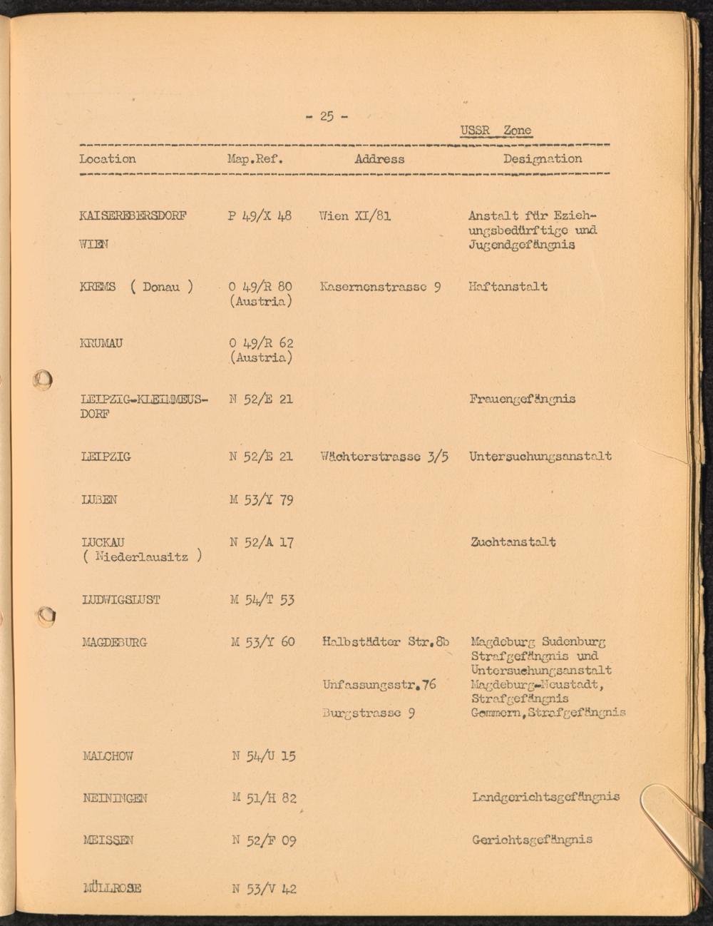 Location list of German Prisons 1939 - 1945 Germany and Austria USSR Zone