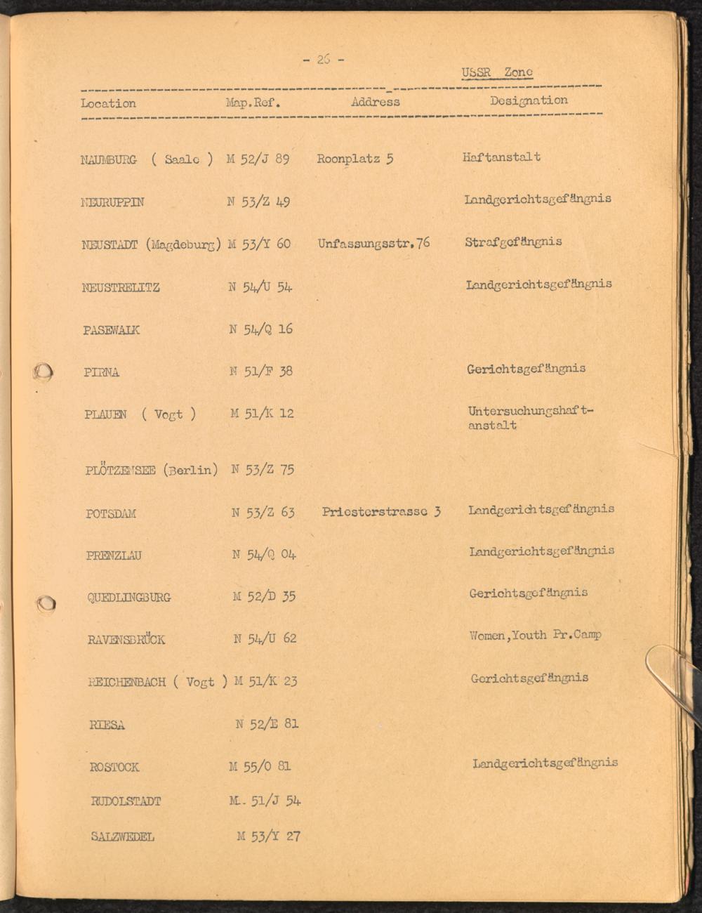 Location list of German Prisons 1939 - 1945 / United Nations Relief and Rehabilitation Administration