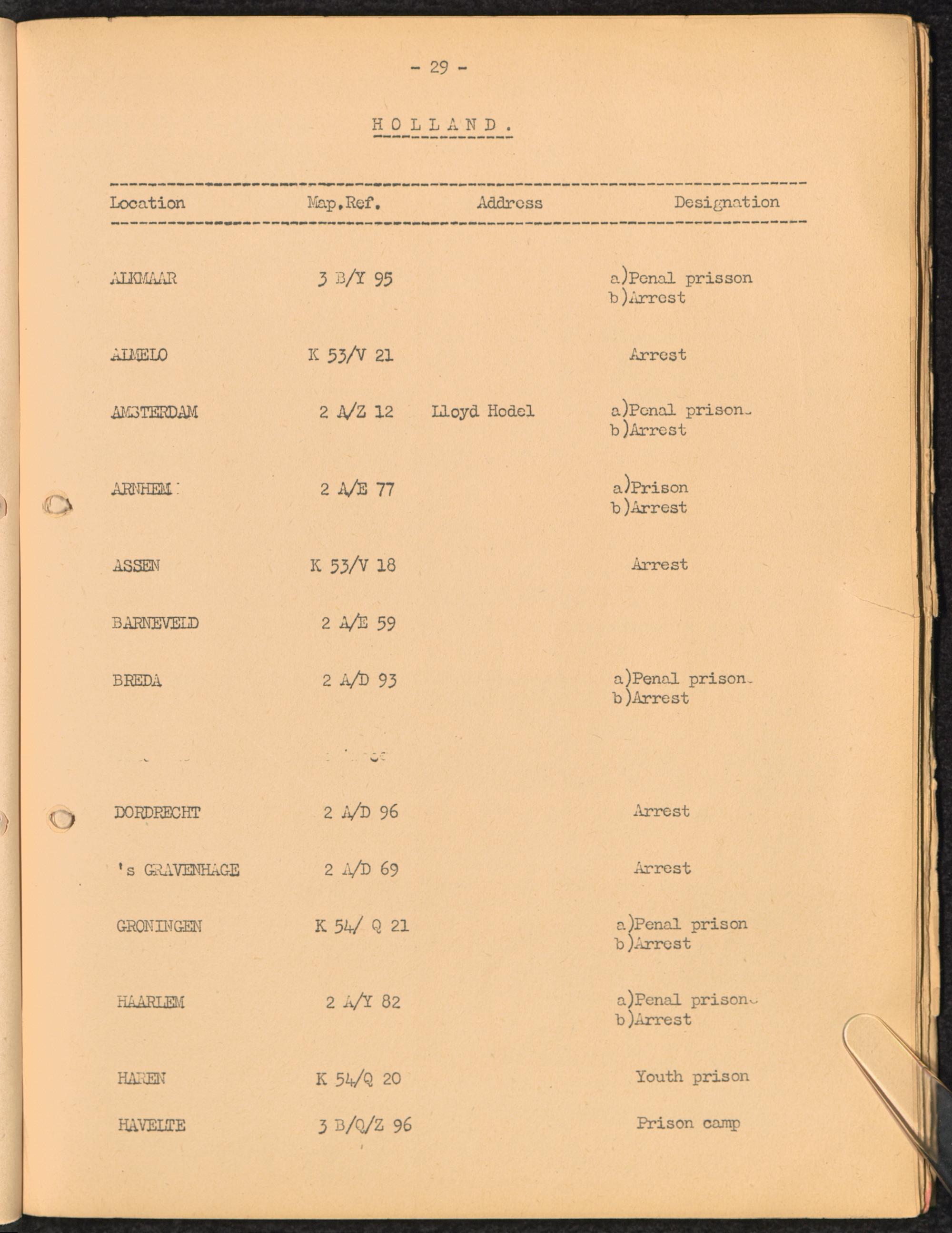 Location list of German Prisons 1939 - 1945 Holland