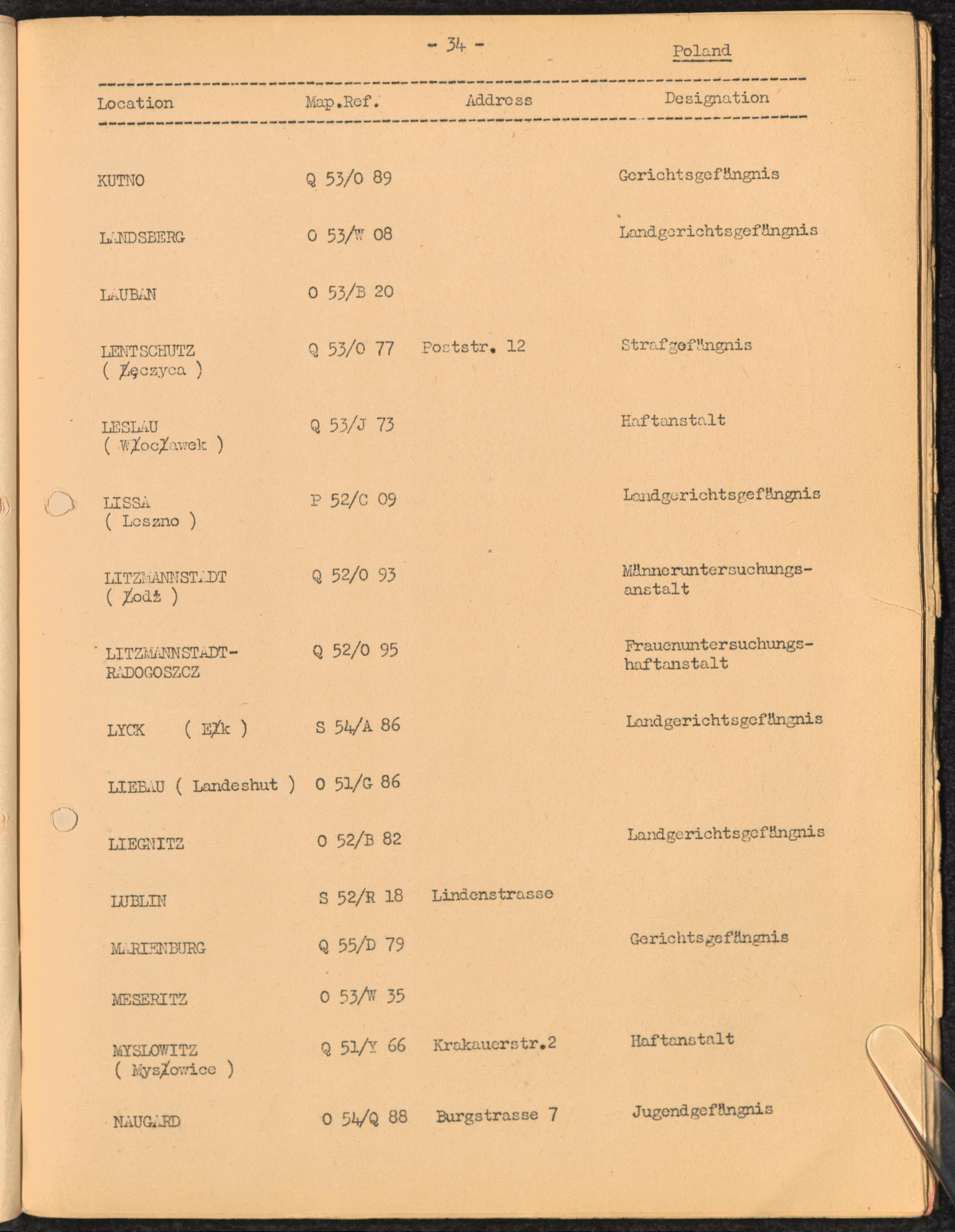 Location list of German Prisons 1939 - 1945 / United Nations Relief and Rehabilitation Administration