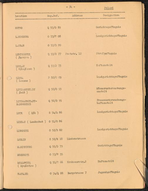 Location list of German Prisons 1939 - 1945 Poland