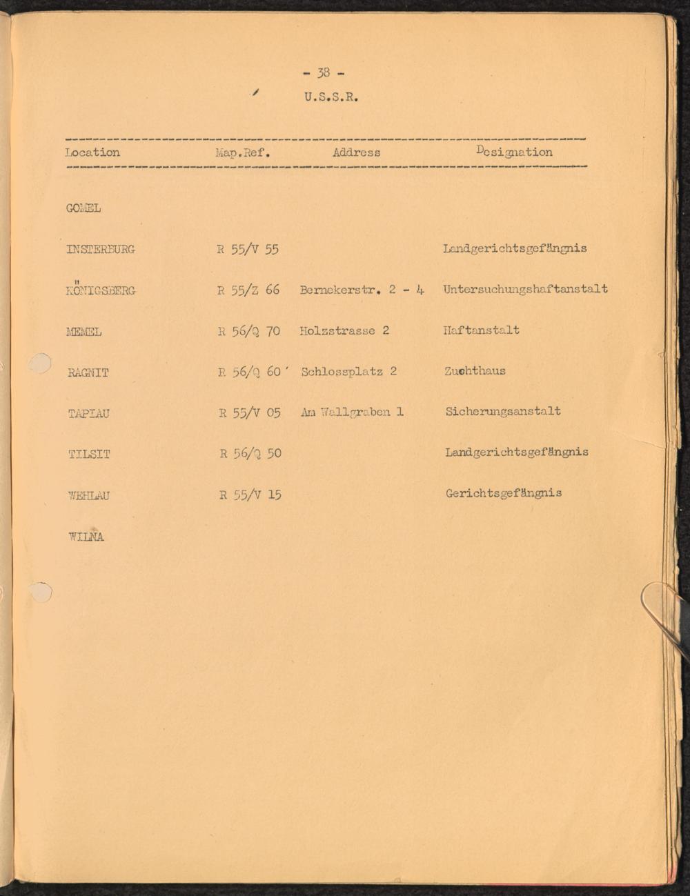 Location list of German Prisons 1939 - 1945 U.S.S.R.