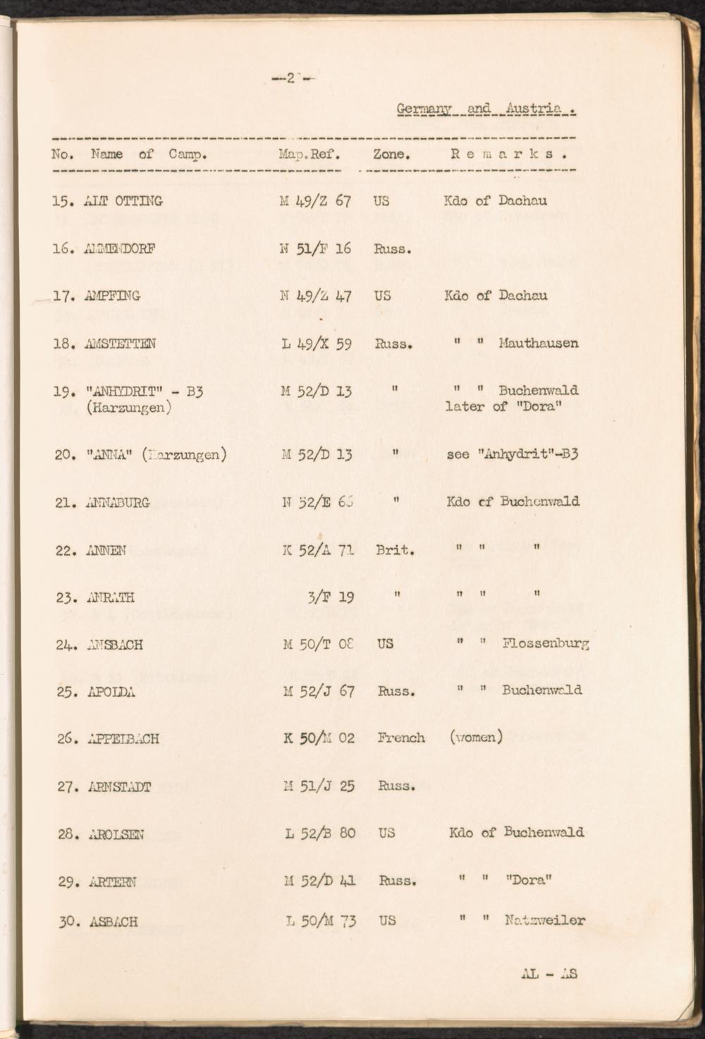 List of Concentration Camps and their Kommandos in Germany and Occupied Countries... Germany and Austria