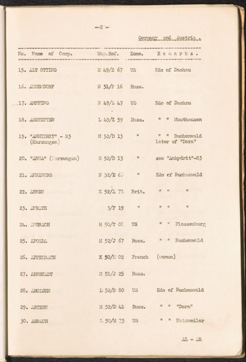 List of Concentration Camps and their Kommandos in Germany and Occupied Countries 1939 - 1945 / United Nations Relief and Rehabilitation Administration