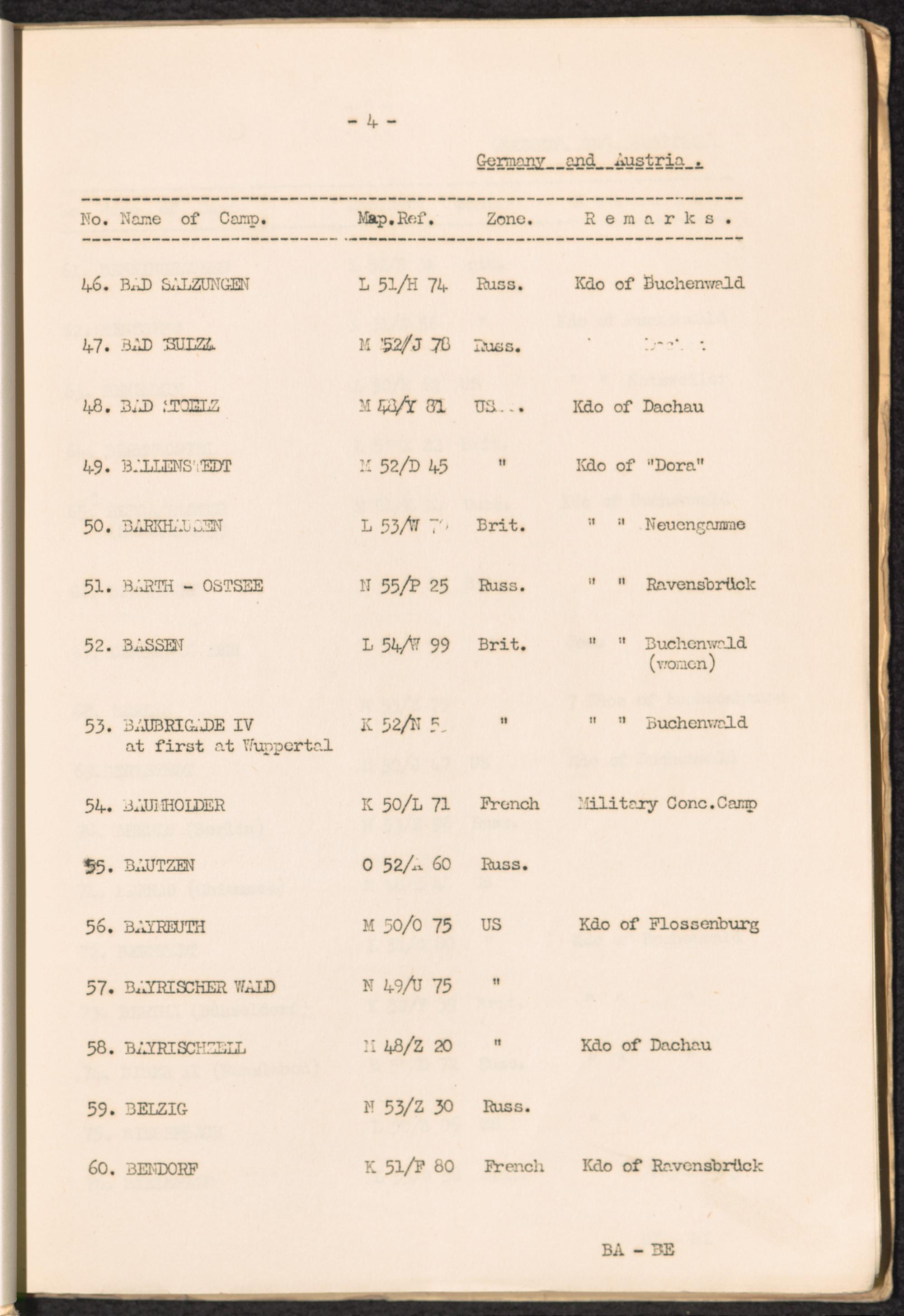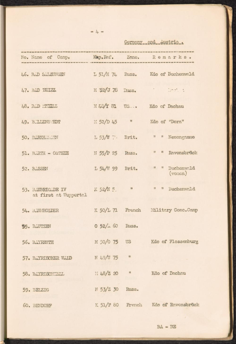 List of Concentration Camps and their Kommandos in Germany and Occupied Countries... Germany and Austria