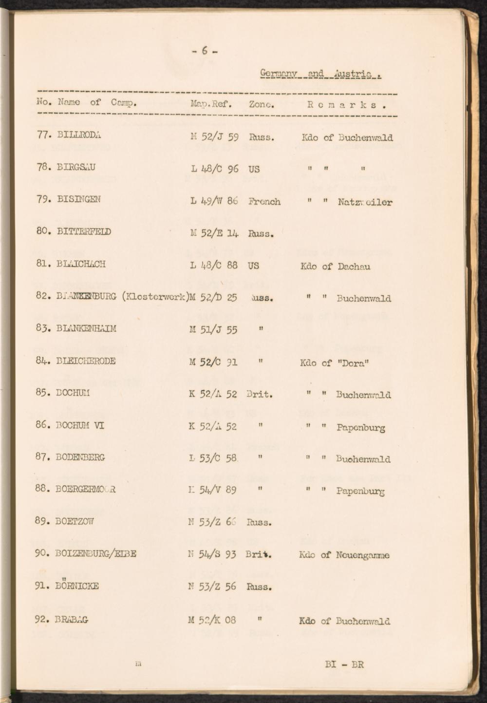 List of Concentration Camps and their Kommandos in Germany and Occupied Countries... Germany and Austria