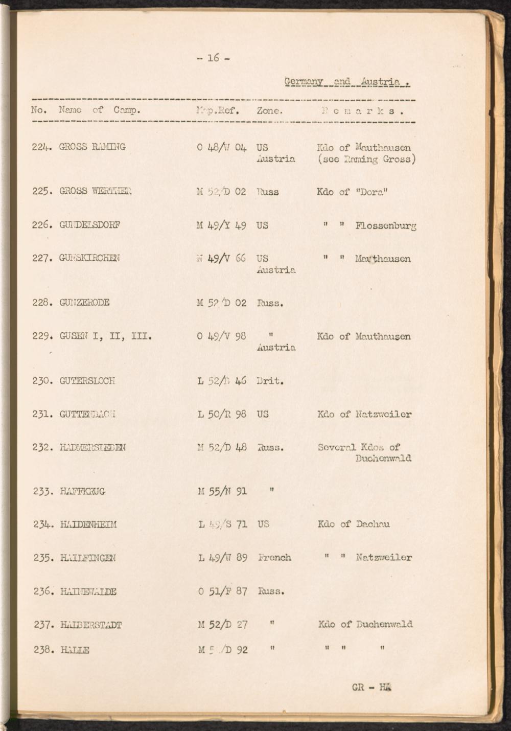 List of Concentration Camps and their Kommandos in Germany and Occupied Countries... Germany and Austria