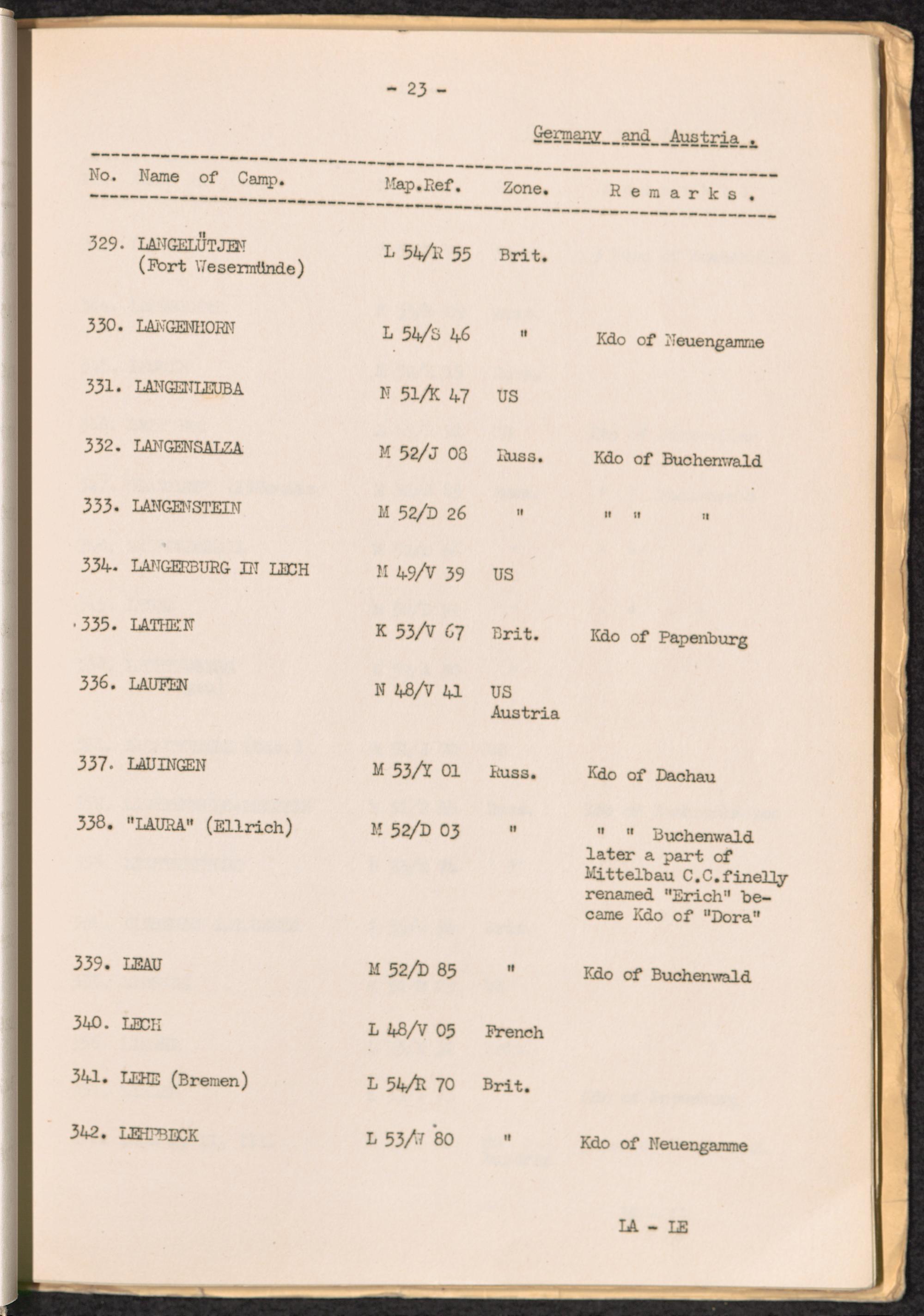 List of Concentration Camps and their Kommandos in Germany and Occupied Countries... Germany and Austria